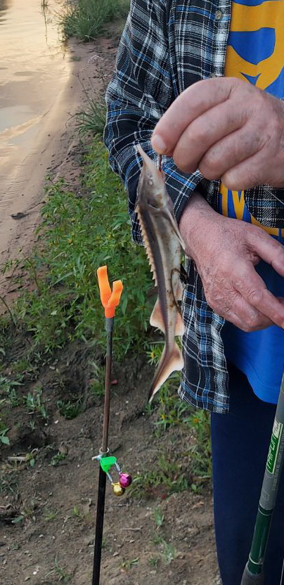 На таких рыбалках постоянно попадается стерлядка. Разумеется, отпускаем.