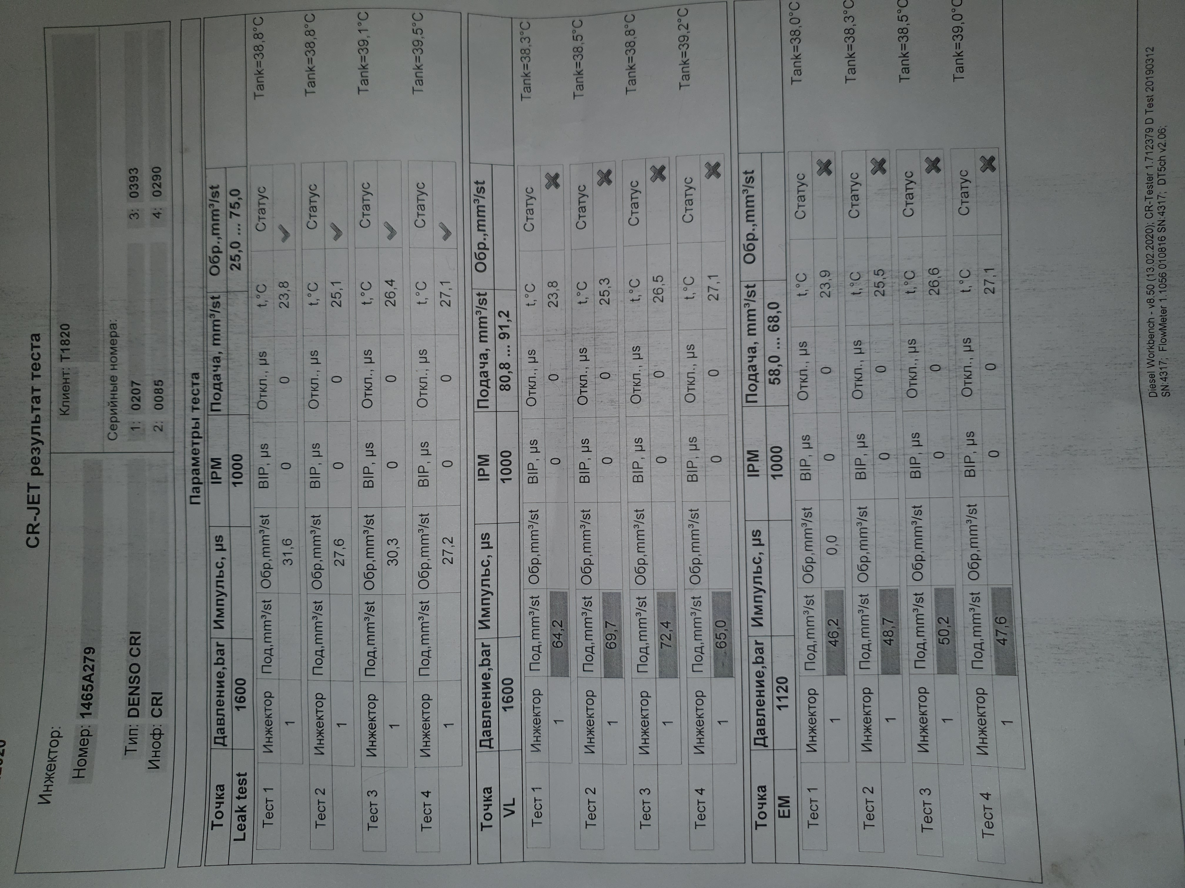 Добрый день! Помогите пожалуйста разобраться со значениями теста форсунок. Можно ли ставить на машину, или нужно менять (ремонтировать) какие нормальные значения допуска должны быть. Спасибо