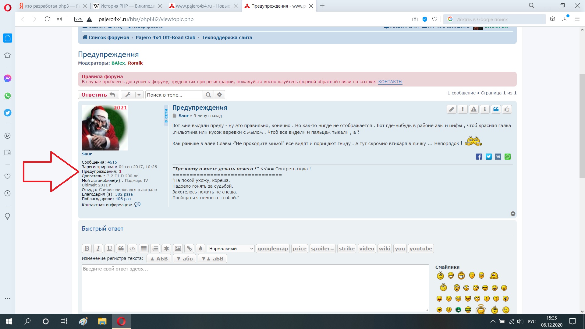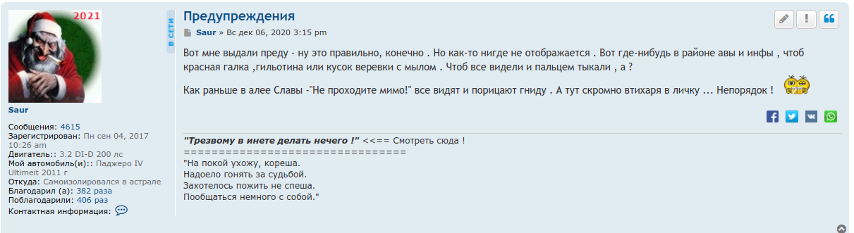 Вот мне выдали преду - ну это правильно, конечно . Но как-то нигде не отображается . Вот где-нибудь в районе авы и инфы , чтоб красная галка ,гильотина или кусок веревки с мылом . Чтоб все видели и пальцем тыкали , а ?