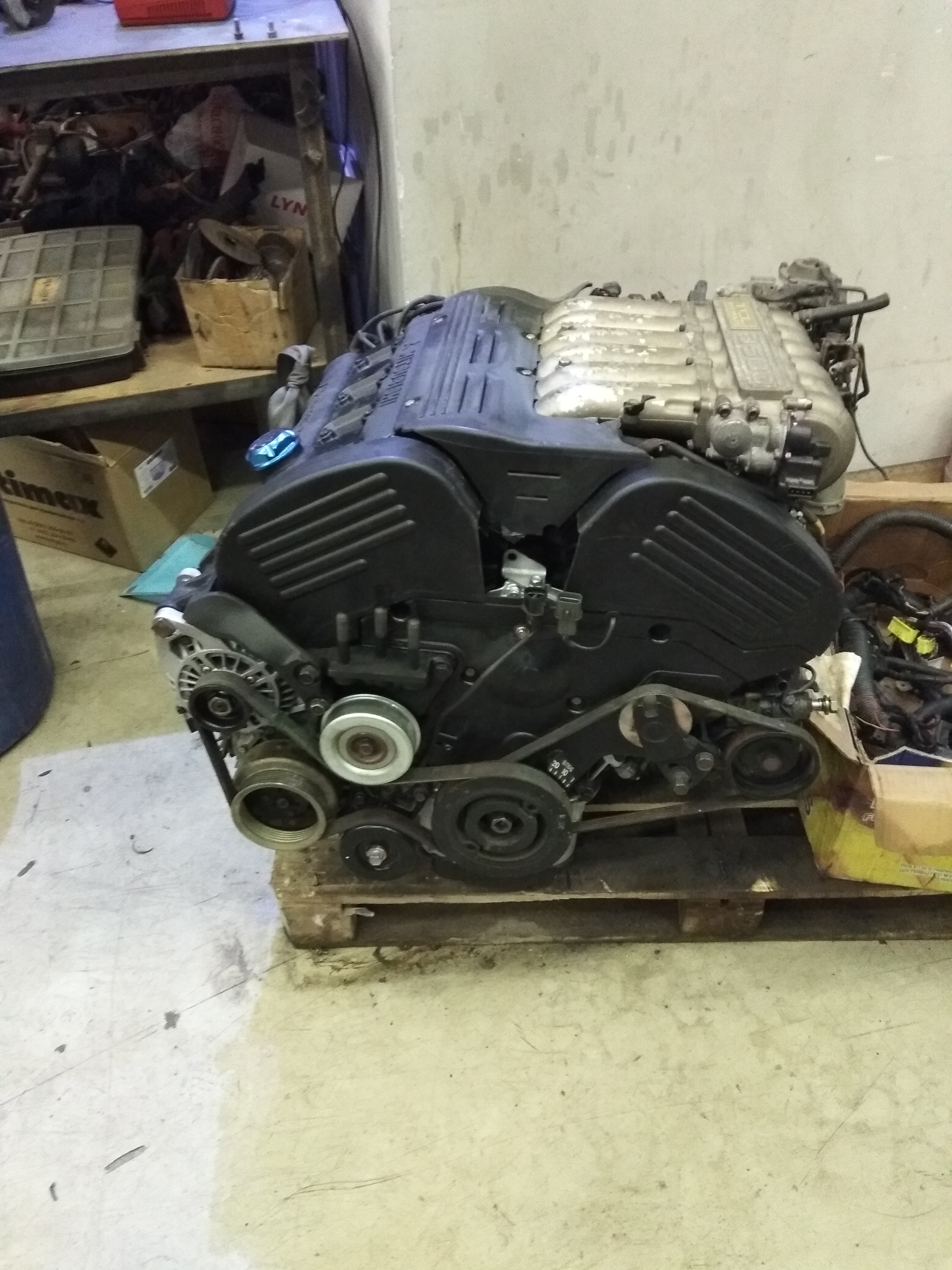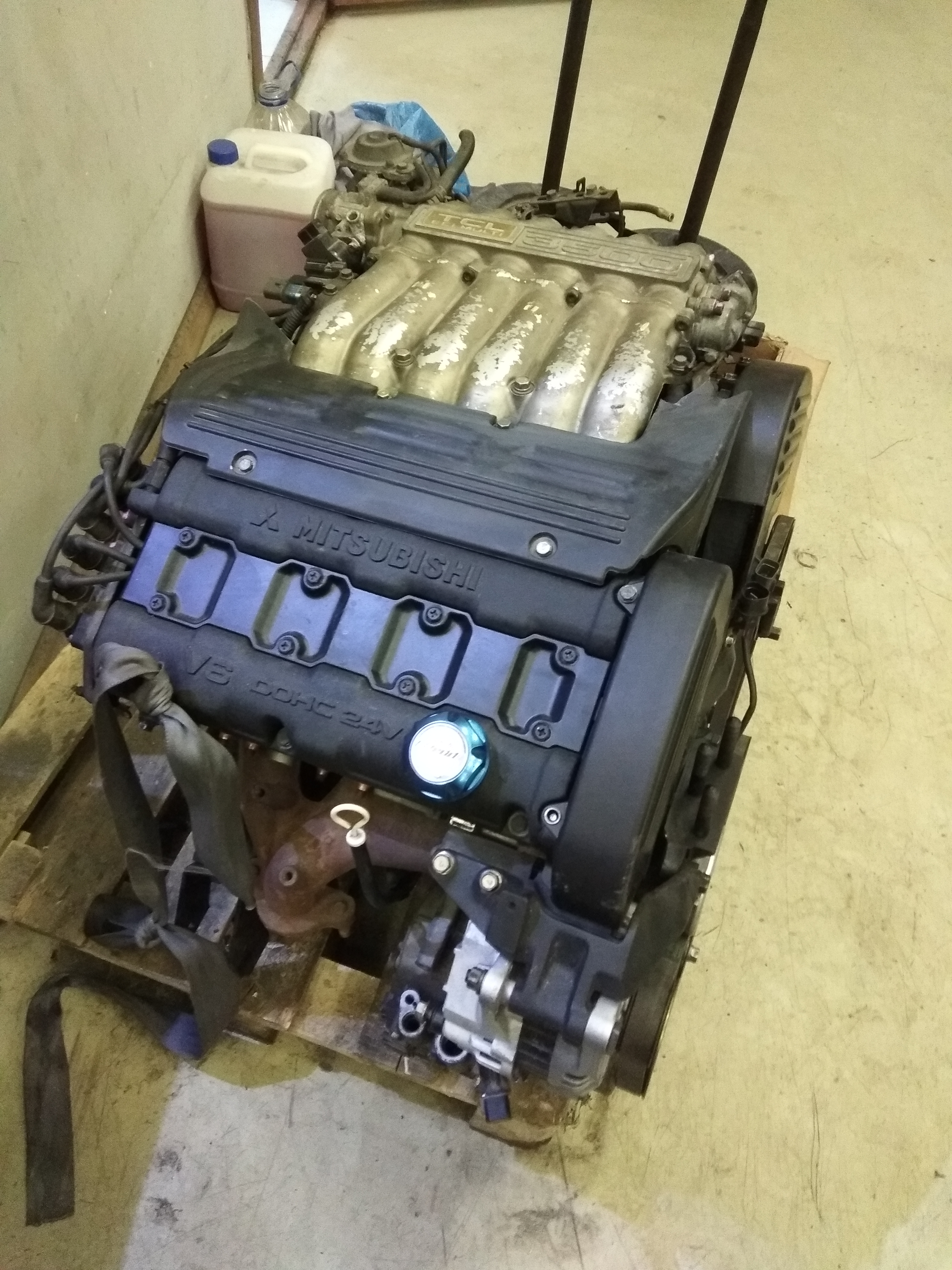 Мотор от ММС debonair 1999года, 260л.с. без всяких его, ТНВД и различной электроники, простой и надежный. пробег 82000км. Был куплен для свапа в дизельную делику булку. Был успешно обслужен (список того, что сделано ниже). Но не влез в подкапотку, упирается левой бошкой в моторный щит и вверху не влазит впускной коллектор. Поэтому на данный момент заказан родной 6g72.