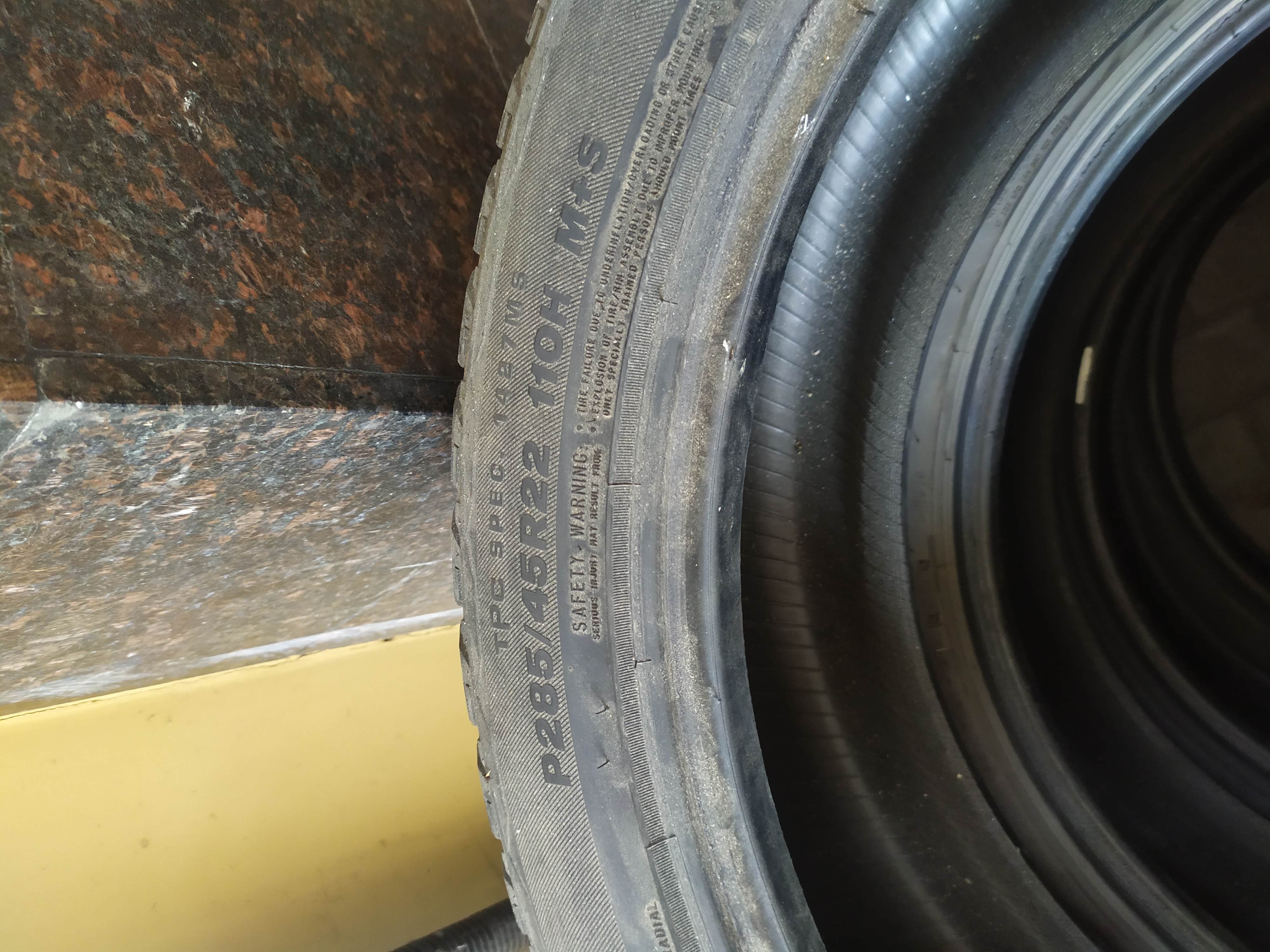 Продам шины Bridgestone Dueler Alenza 285/45R22 110H M+S 4 штуки б/у, состояние очень хорошее, износ одинаковый равномерный, явных порезов - проколов нет, сняты со служебного автомобиля по желанию руководства. Идеальный вариант на сезон-другой. Цена - тыс.руб. за все 4 шины. На фоне стоимости новых, это совсем не много. Осмотр, приобретение Москва, Кедрова 15, отправка - предпочтение самовывозу, не очень хочется их везти в ТК. Тел.