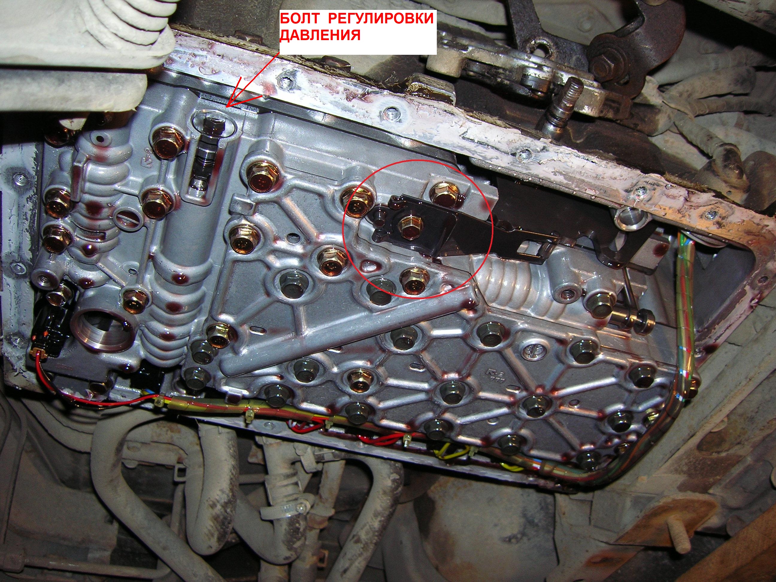 Сначала отдефектуй всё же фильтр, может как Саша писал в нём дело (у многих так было), а если уж терять нечего, тогда можно и за эксперименты взяться - болт отмеченный на фото (слева находится со стороны селектора переключения коробки) выкрути на 2-3 полных оборота для начала, по результатам испытаний (при положительно эффекте но ещё не полном избавление от проблемы) ещё можно будет добавить.TehStandart72 писал(а): ↑ подскажи, что и где крутануть надо...