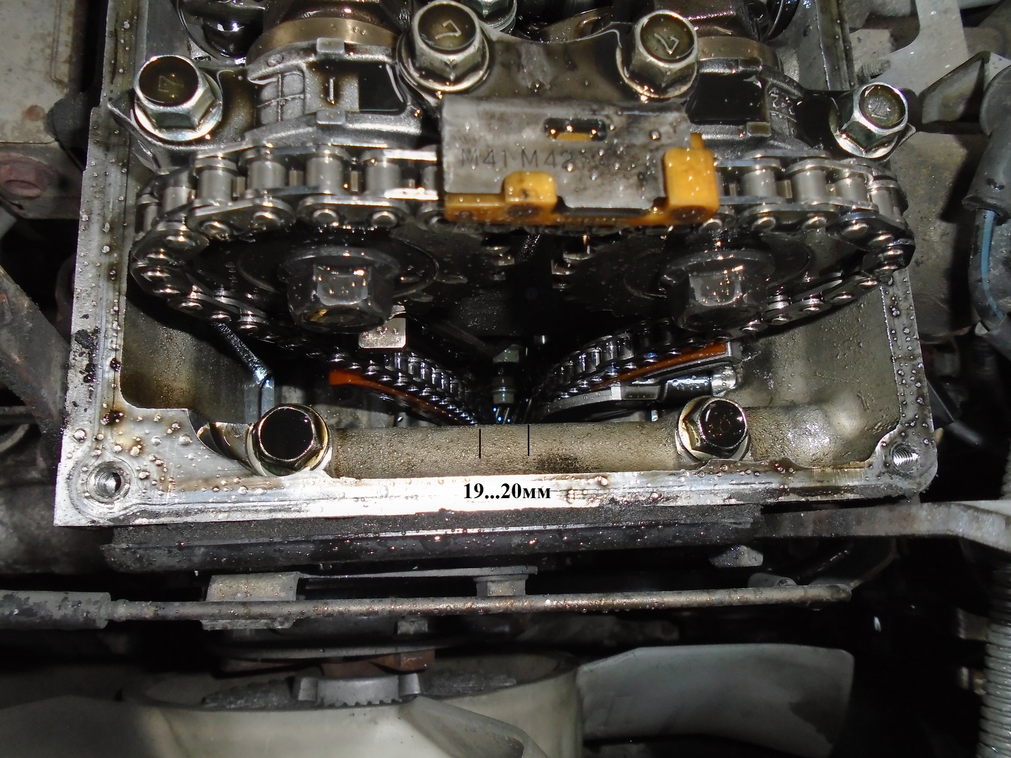 Главный вопрос - почему между ветками 19...20мм? Пишут, якобы при пробеге он уменьшается до 9мм и ниже 9 - это замена. А в норме от 9 до 16мм. Но ведь цепь подъедает пластик с бокововых планок и с нижней, когда пластика там становится меньше - то зазор будет больше. В чем тогда логика и как быть с зазором 20мм?