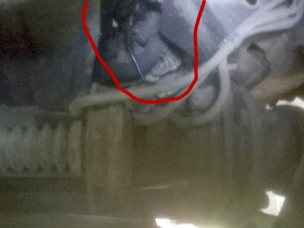 Фото снизу справа походу движения. Сзади внизу двигателя, чуть выше правой опоры. Снизу выходит провод. Все это в масле, пытаюсь понять что такое. Проблем с двигателем нет, просто залез снизу и увидел непорядок.
