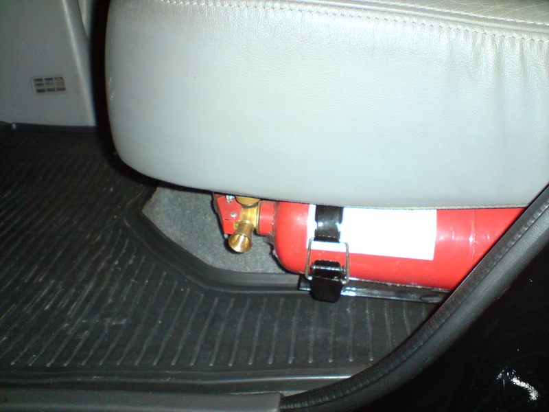 Ну т.е. левую заднюю дверь открываешь и под пассажирским креслом видишь углубление - в него очень удачно помещается огнетушитель.