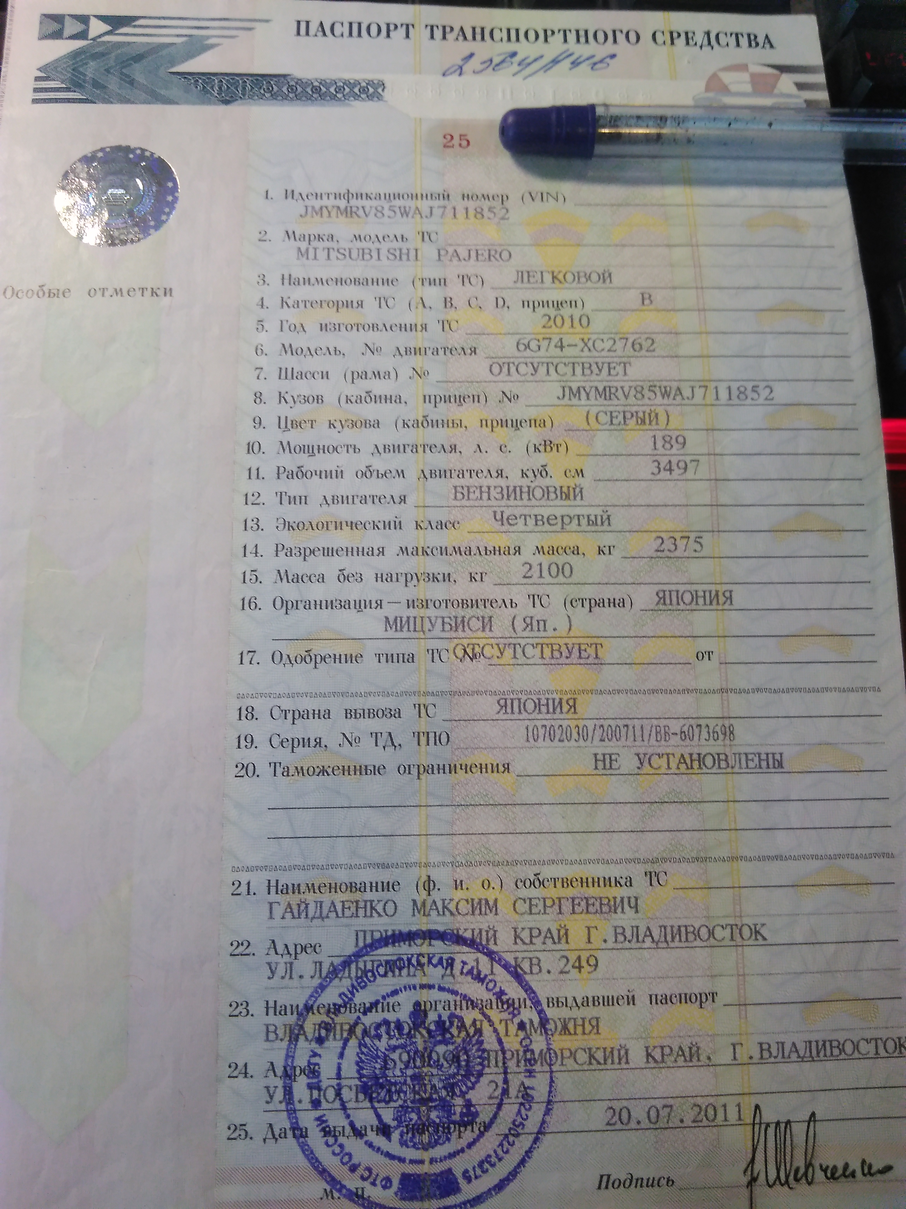 ПТС оригинальный, выдан таможней. Машина привозилась новой в июне 2011г. Фактически два собственника, первым записан кто пригонял машину и таможил ее, вторым кто ее заказывал, затем поменяли через трейдин (3я запись) и четвертая запись второго действующего владельца.