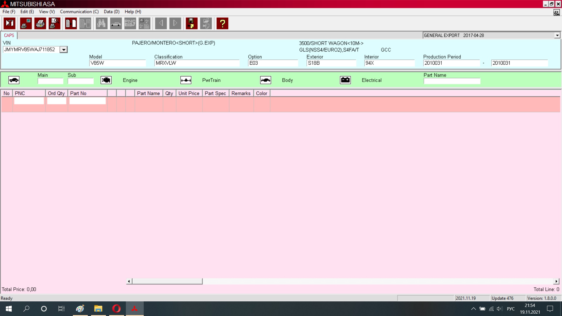 Модель PAJERO (SHORT)(G.EXP) (V80# )