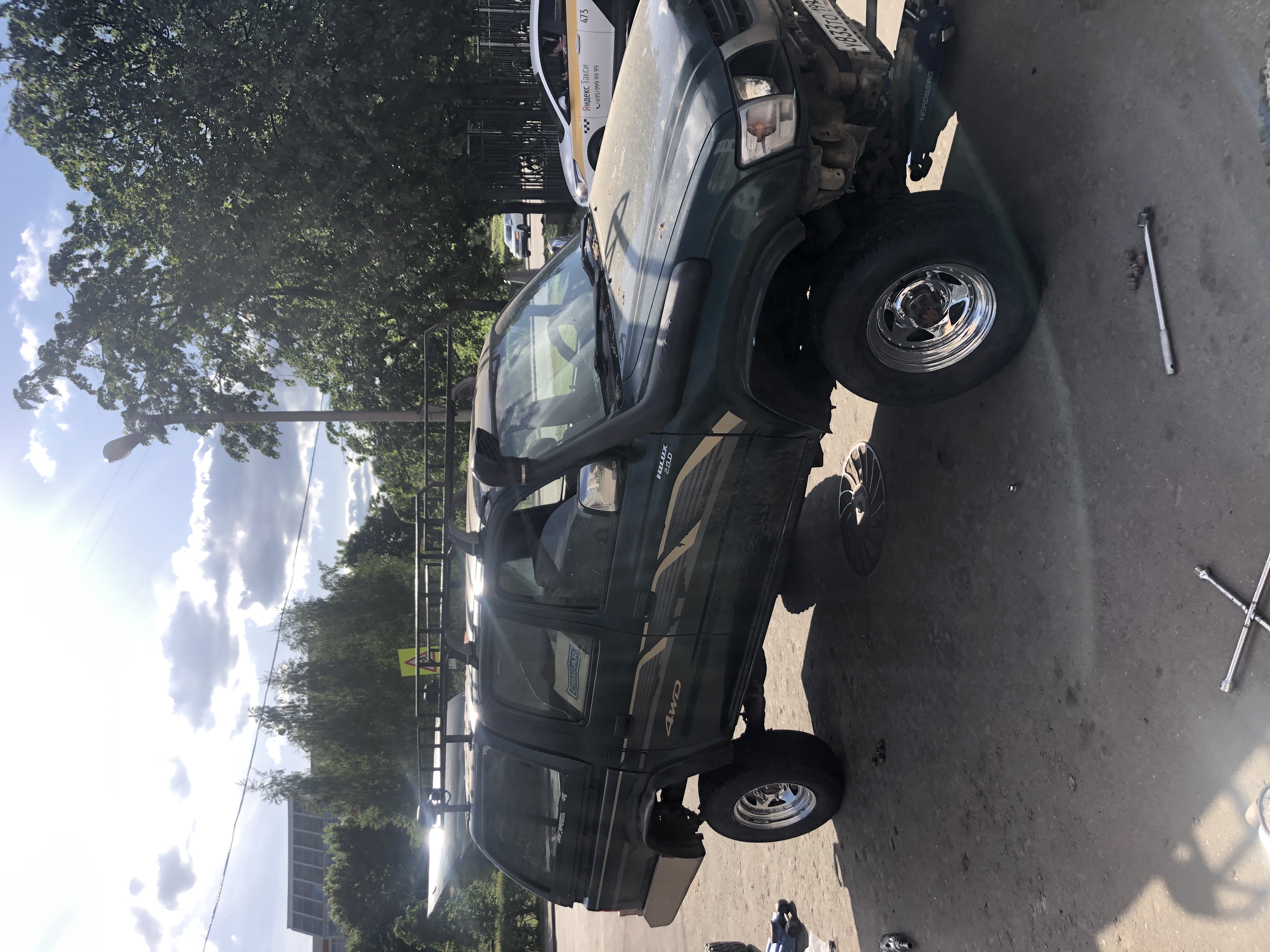 Резина Нексен в нормальном состоянии. Еще походит, атэшка. В комплекте по 5 хром гаек на колесо(шестая была секретка).