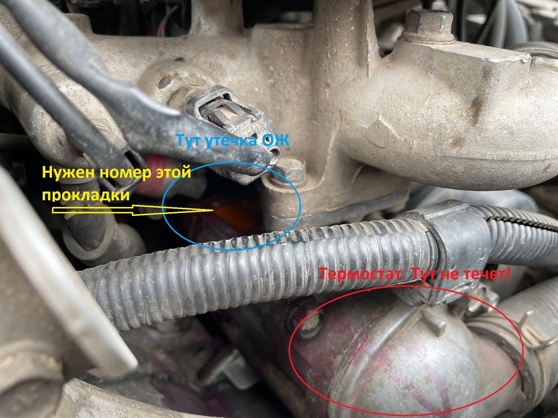 Ребята, всем доброго времени суток! Столкнулся с такой проблемой: заметил, что ОЖ медленно уходит, подливал грамм 50 на 1000 км. Режил осмотреть как следует, куда же она исчезает. Далеко ходить не пришлось: в том месте, где корпус термостата "прилегает" к двигателю обнаружил утечку. Внимание вопрос: какой номер прокладки этого элемента и было ли у кого похожее?