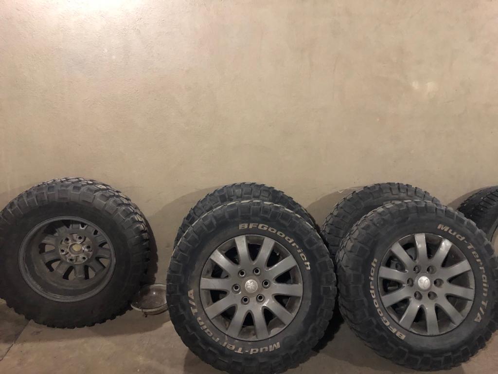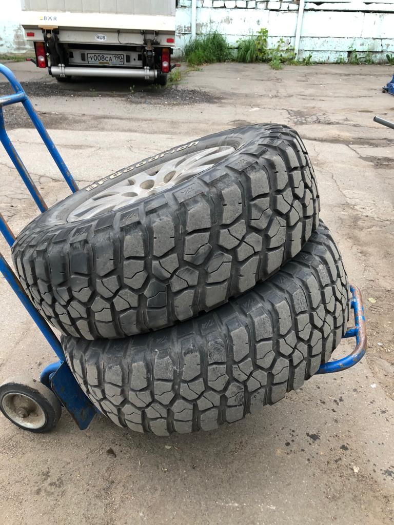 Продам 5 колёс в сборе. Шины BF Goodrich Mud-Terrain LT265/70R17 121/118Q. Б/У. Высота протектора 8-9 мм. Диски литые, реплика. Встают на дизельный Pajero IV без проставок. Цена за комплект - 60 тр( шестьдесят тысяч рублей). Самовывоз из Химок, Московская обл. Телефон 7(985)809-два семь-96.
