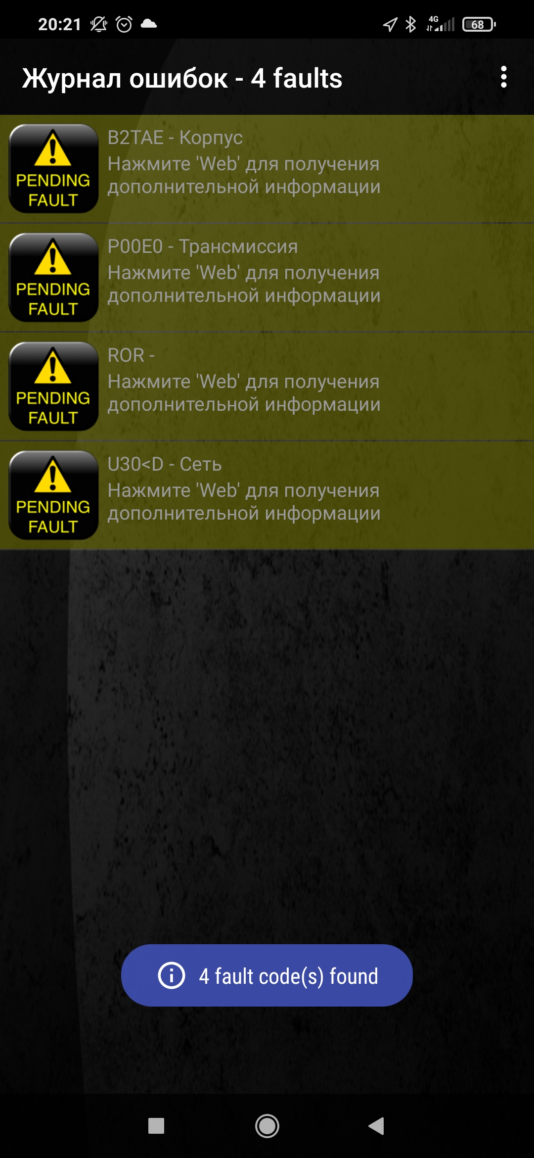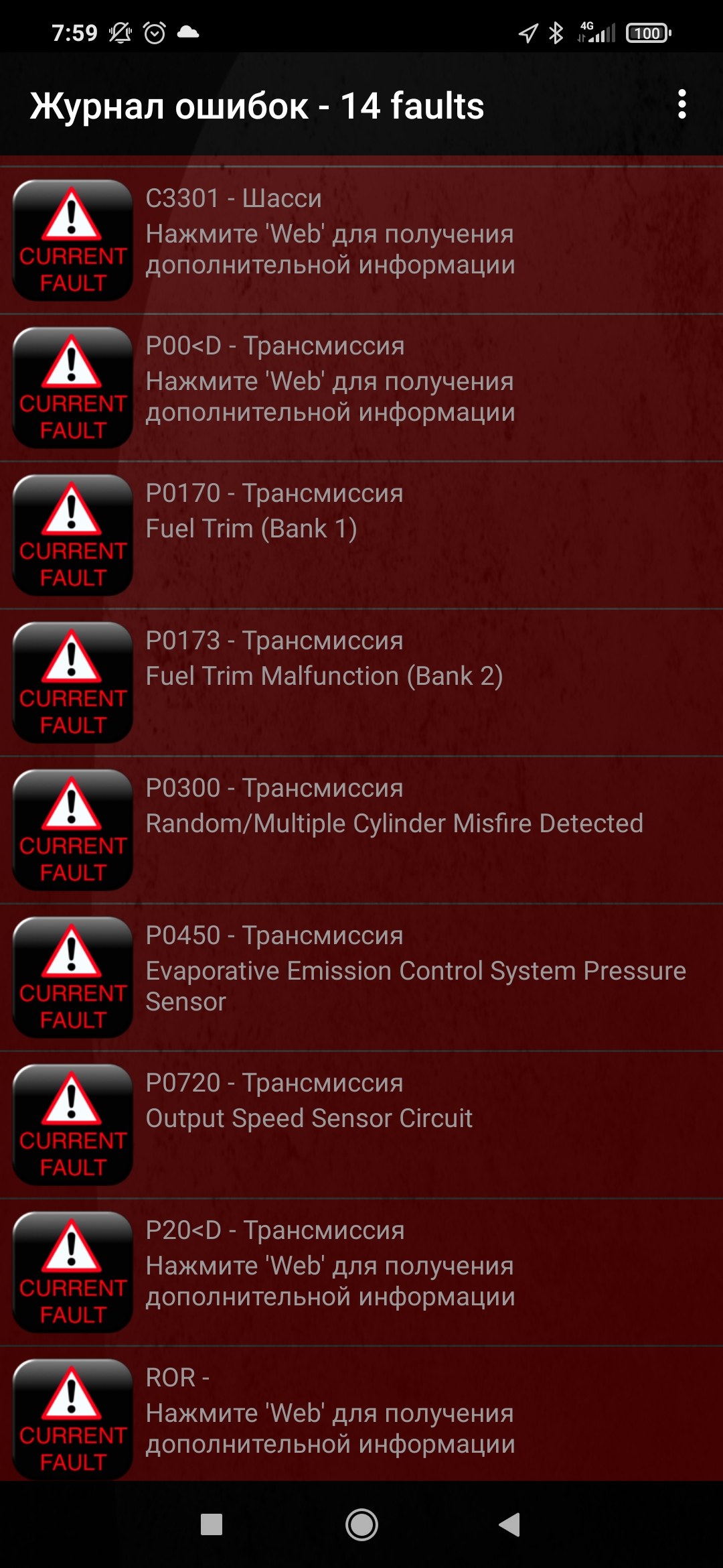 Два дня не занимался, не было времени, машина в гараже.. Сегодня подключил акумм запустил, попробовал подключить свисток, подключился.. Какие-то странные показания тахометра были при подключении на дисплее программы.. Подключение прошло а стрелка Тахо несколько секунд колдоебилась у нуля а потом нормально стала.. На тахометре машины всё норм.. Просмотр ошибок выдал следующую портянку..