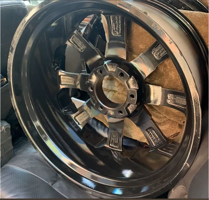 Колпаки ступиц сейчас черные, на одном колпаке есть скол.
