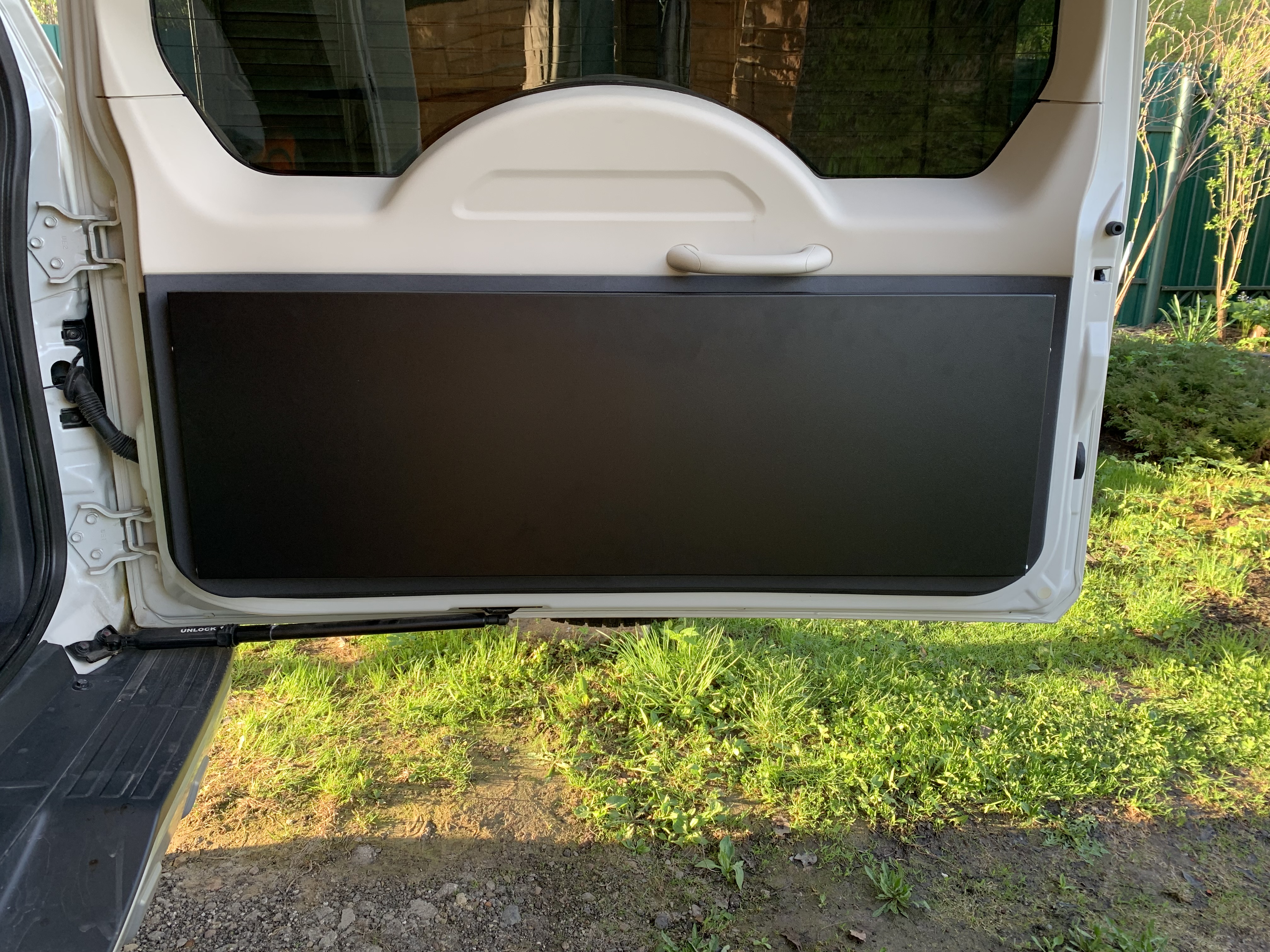 тут конечно очень не хватало бумажного шаблона для определения мест сверления обшивки двери багажника.