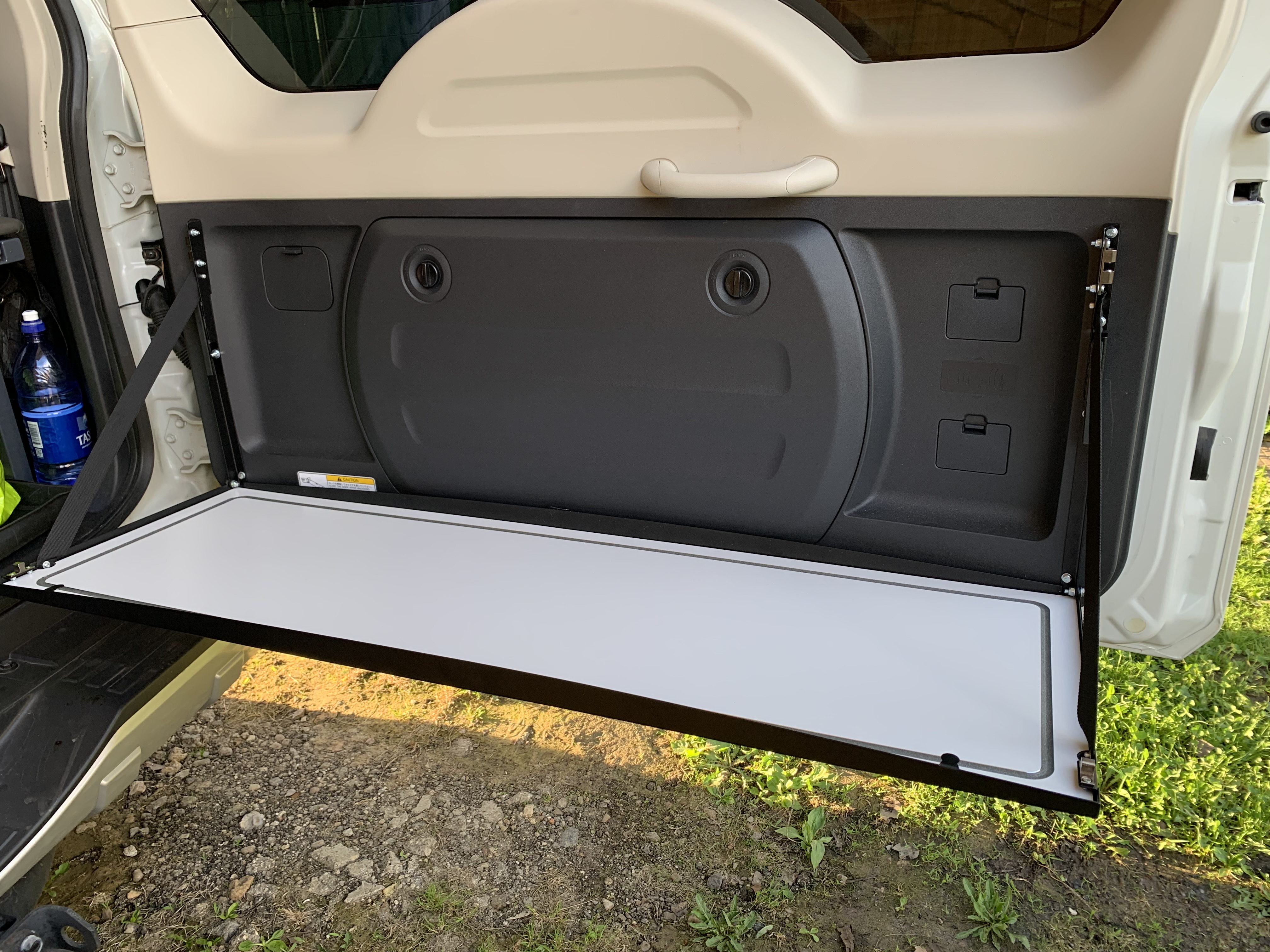 А насколько нужен этот стол? Это постоянно быть привязанным к машине. Вот если бы дверь вверх открывалась, что б дождь не мочил... а так полно туристических столов.
