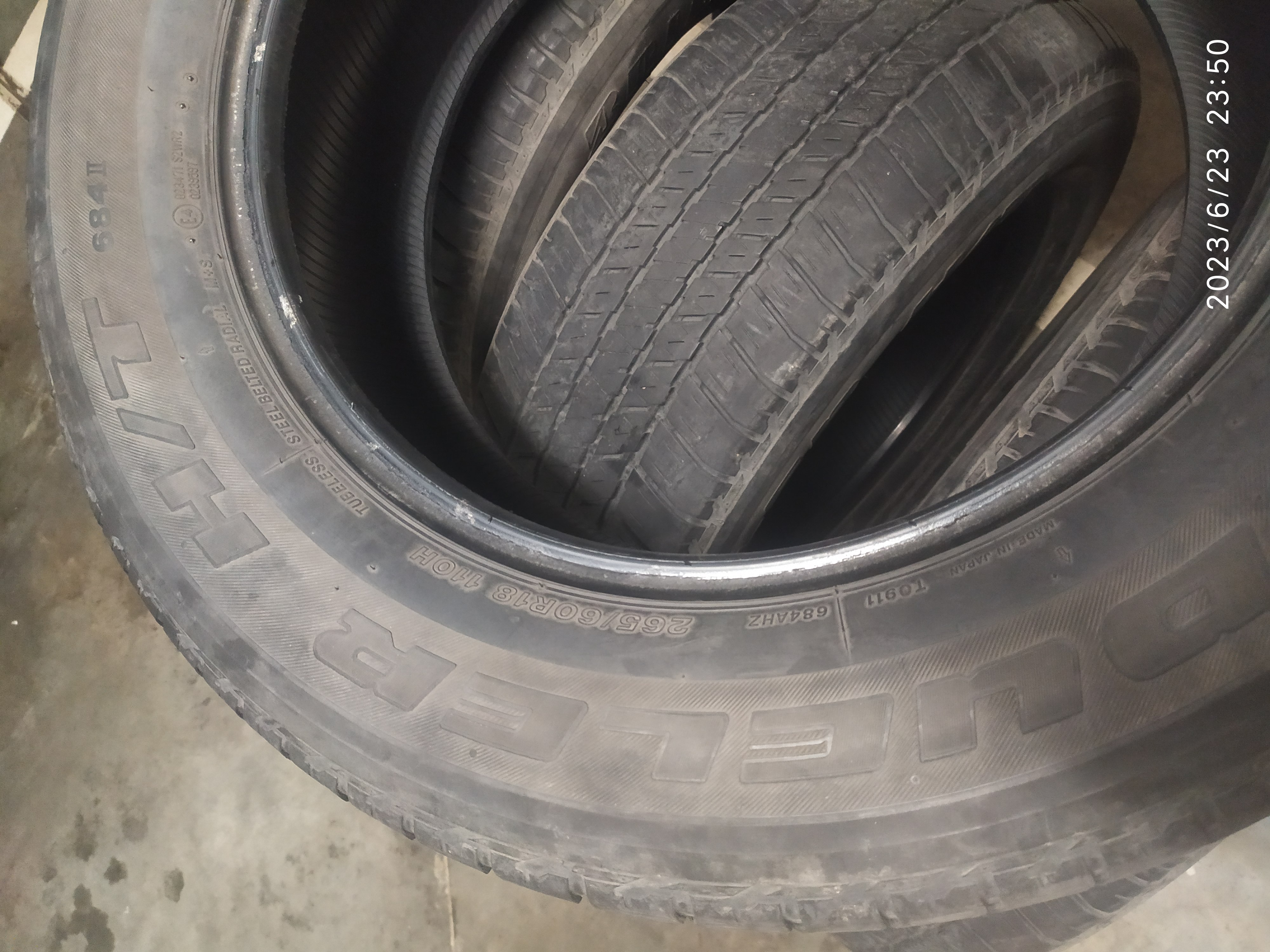 Продано!!!! комплектом 4 шины, Bridgestone Dueler H/T 684 II, 265/60 R18, 110H, шины из одной партии, 2013 год выпуска, износ равномерной, остаток протектора порядка 4.5 мм, точно не замерял, проколов, порезов, грыж нет, изнутри никаких заплаток нет, в одном был саморез, но не насквозь.