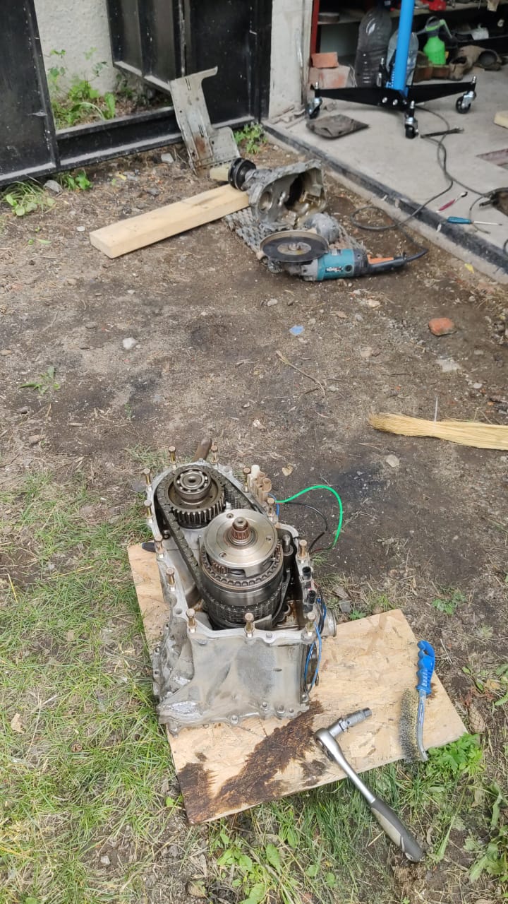 Так получилось, что пришлось снять и разобрать раздатку и потом нужно разобрать и коробку наверно.