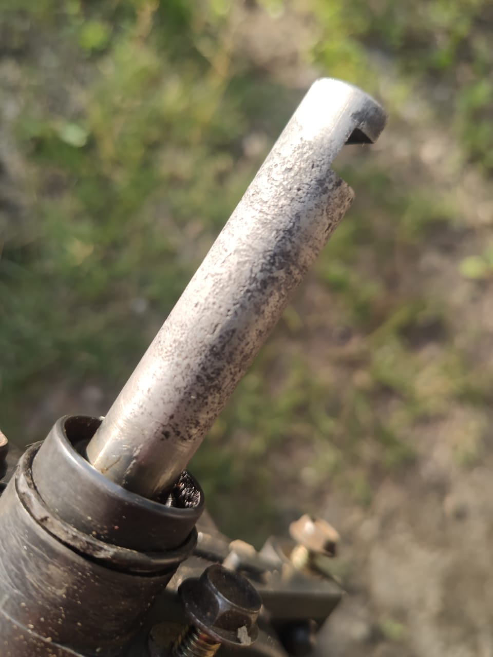 Шток тоже весь в рытвинах.