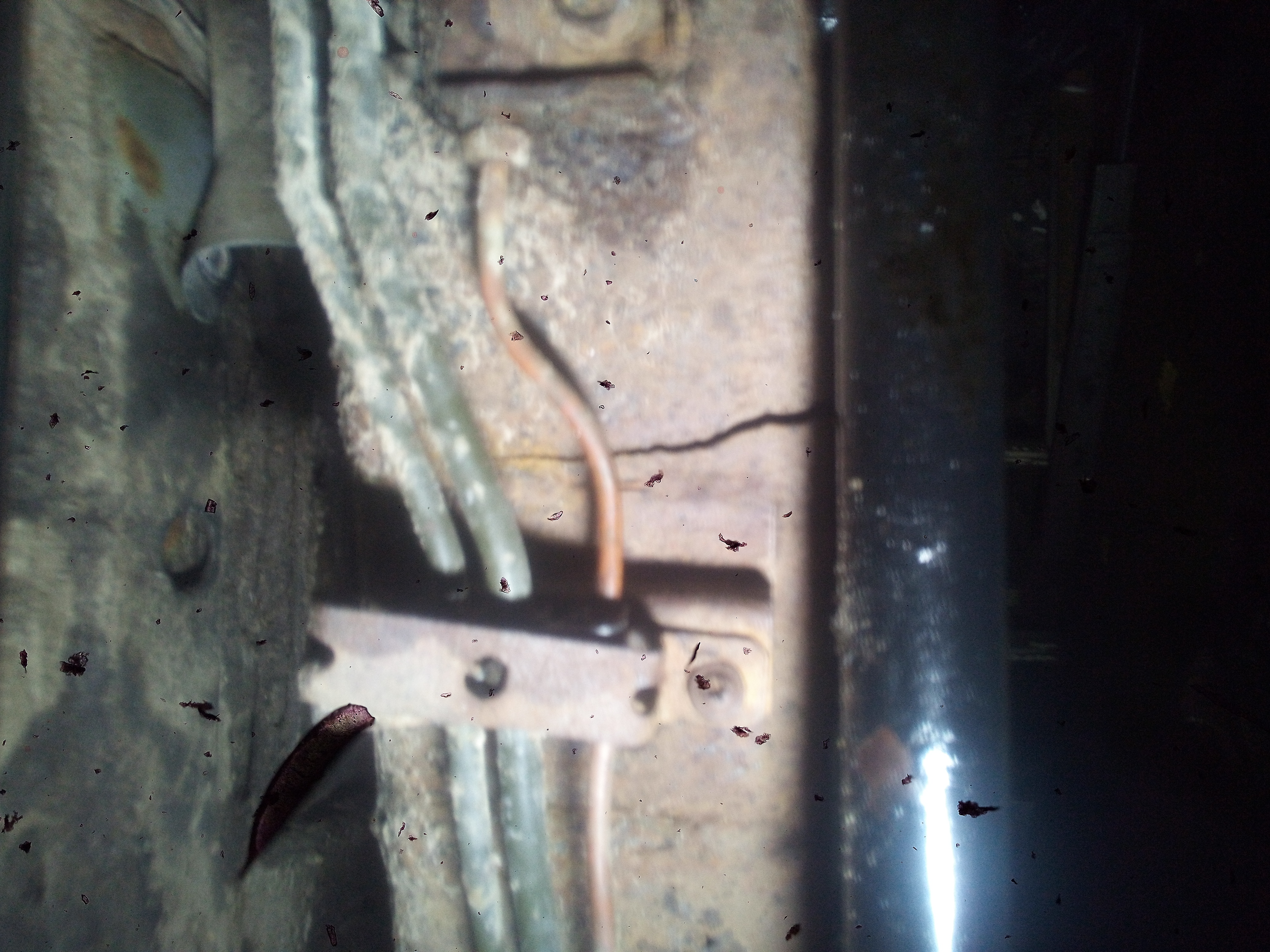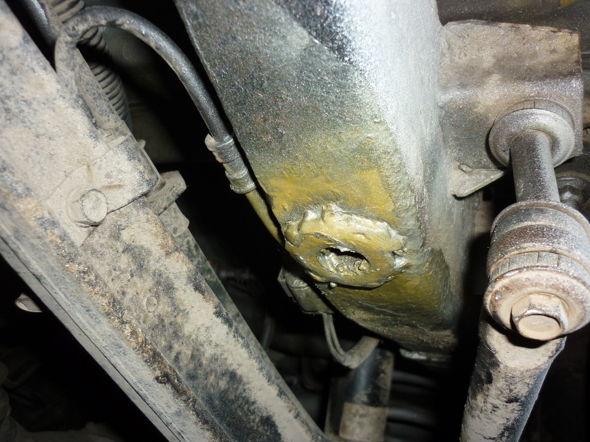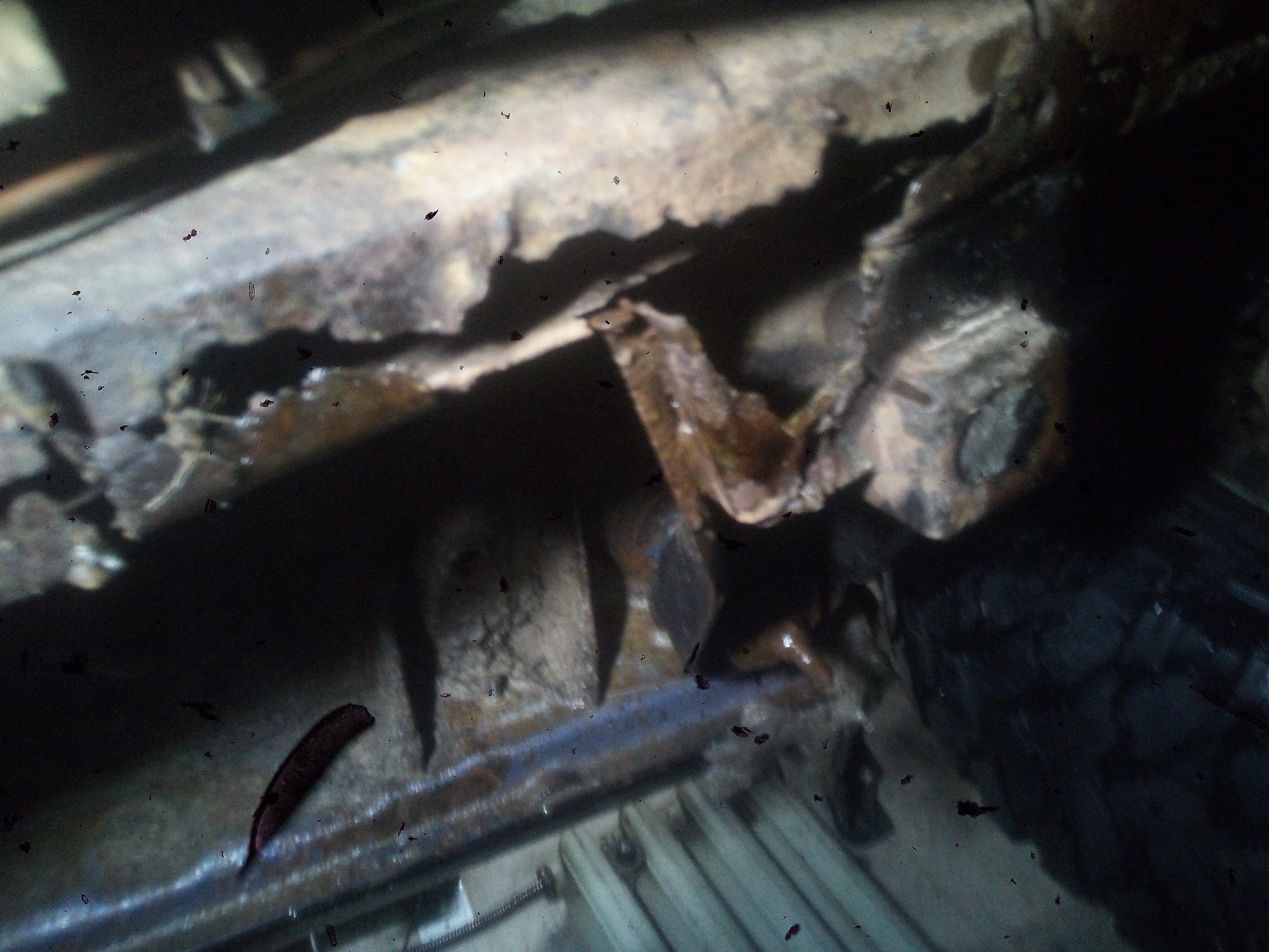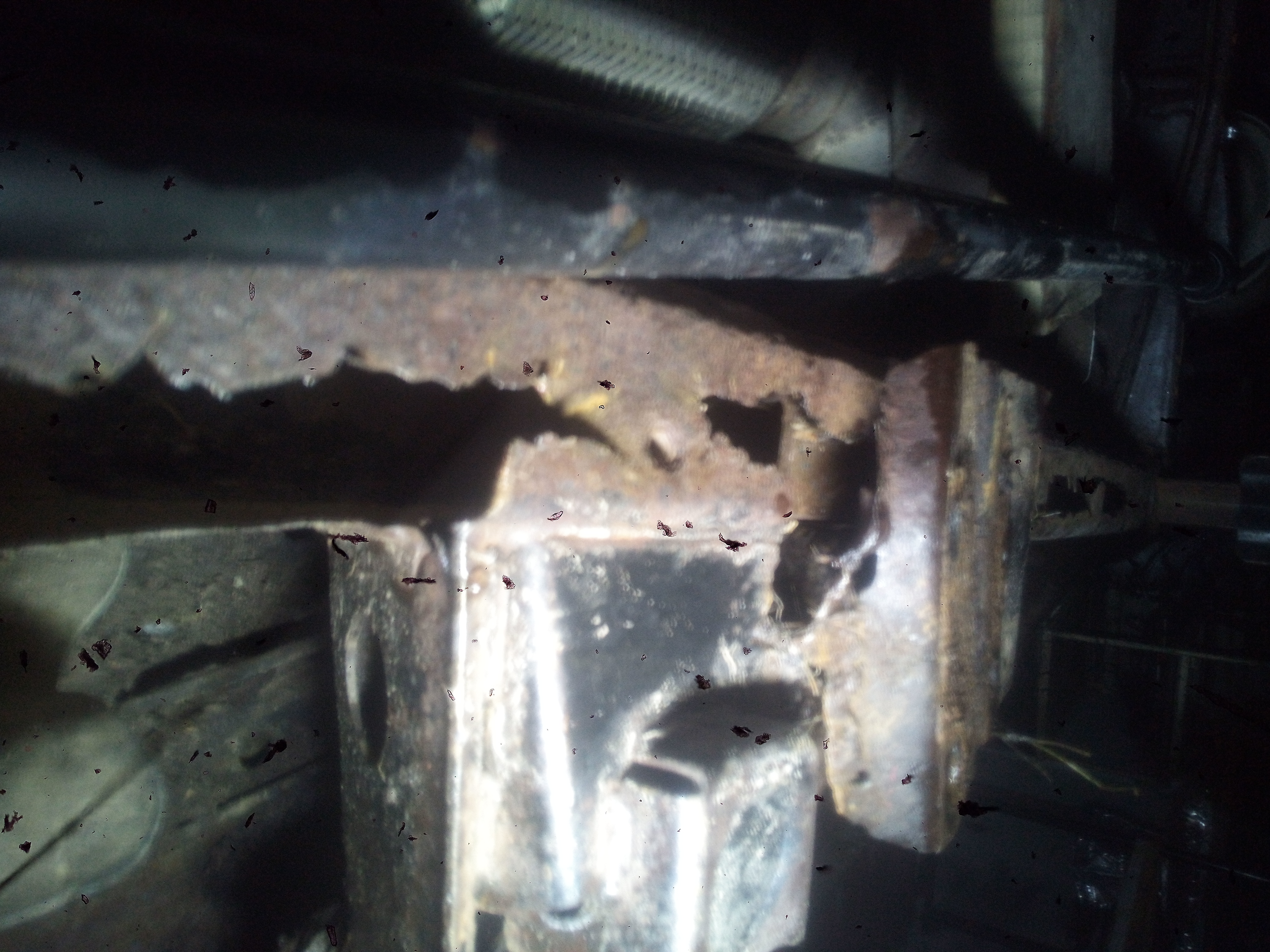 Крепление кронштейна подушки под КПП отгнили. Я их прихватывал месяца три назад, но металл уже фольга, просто отломал.