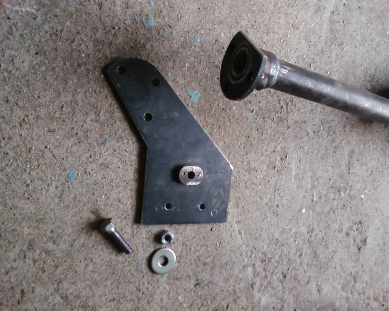 Пластины привернул и на месте прихватил сваркой к ним трубу, чтоб равномерно разместилась между глушителем и бампером,трубу опустил примерно на 1см ниже уровня бампера и уже к ней снизу приварил собственно трубу с шаром (отрезал от нивовского прицепного, валялся без дела) потом понятно все снял и проварил нормально.