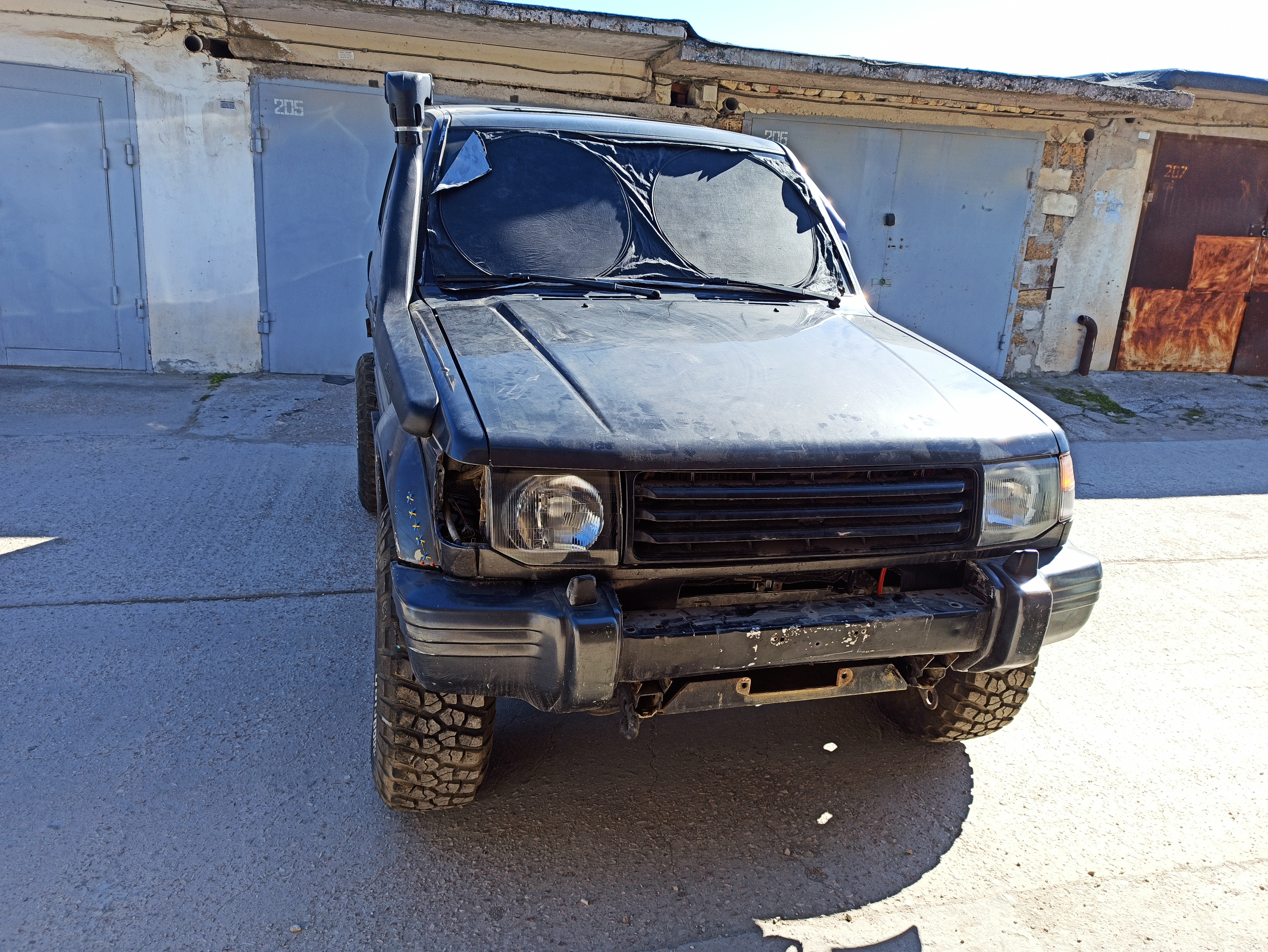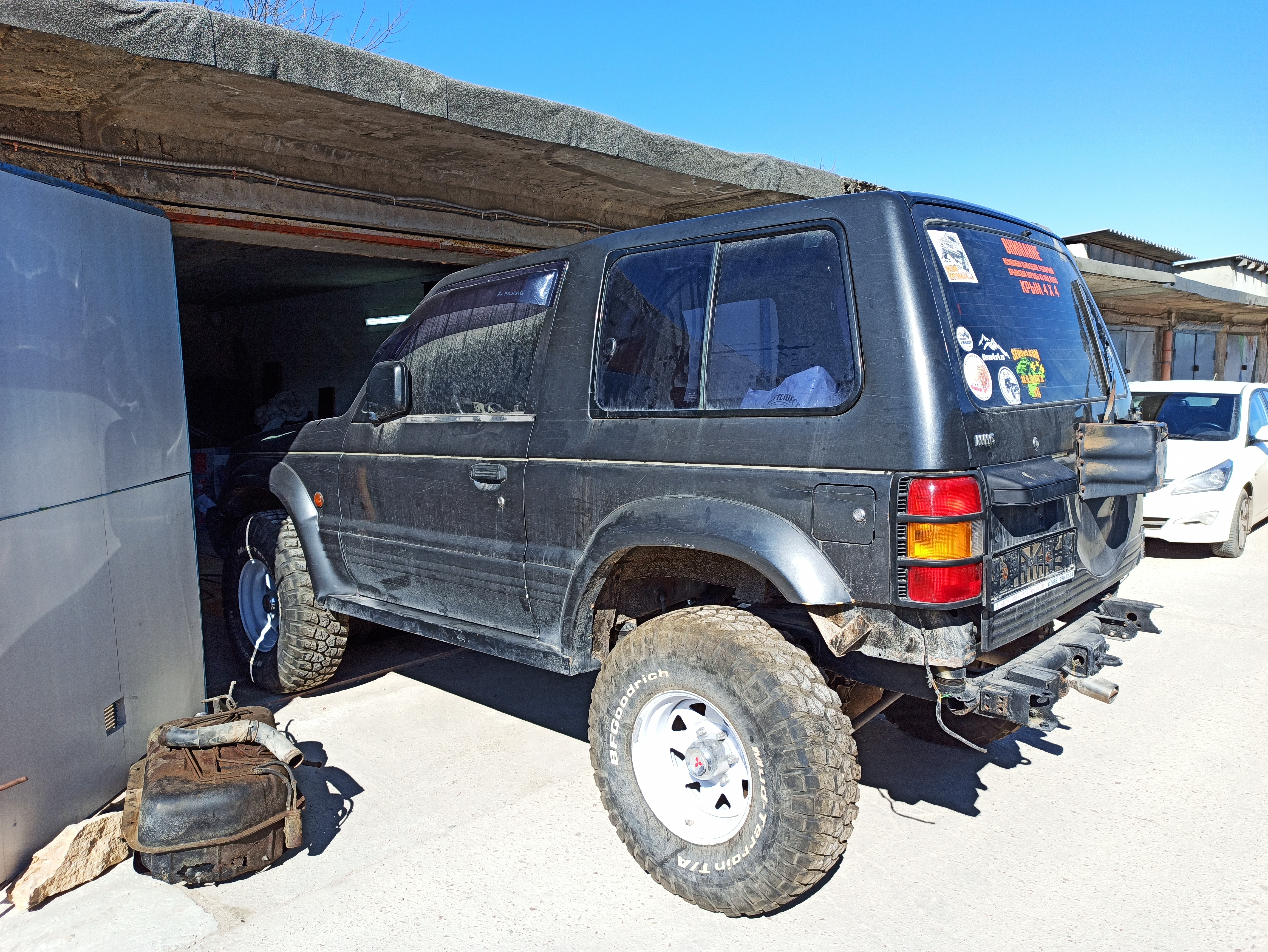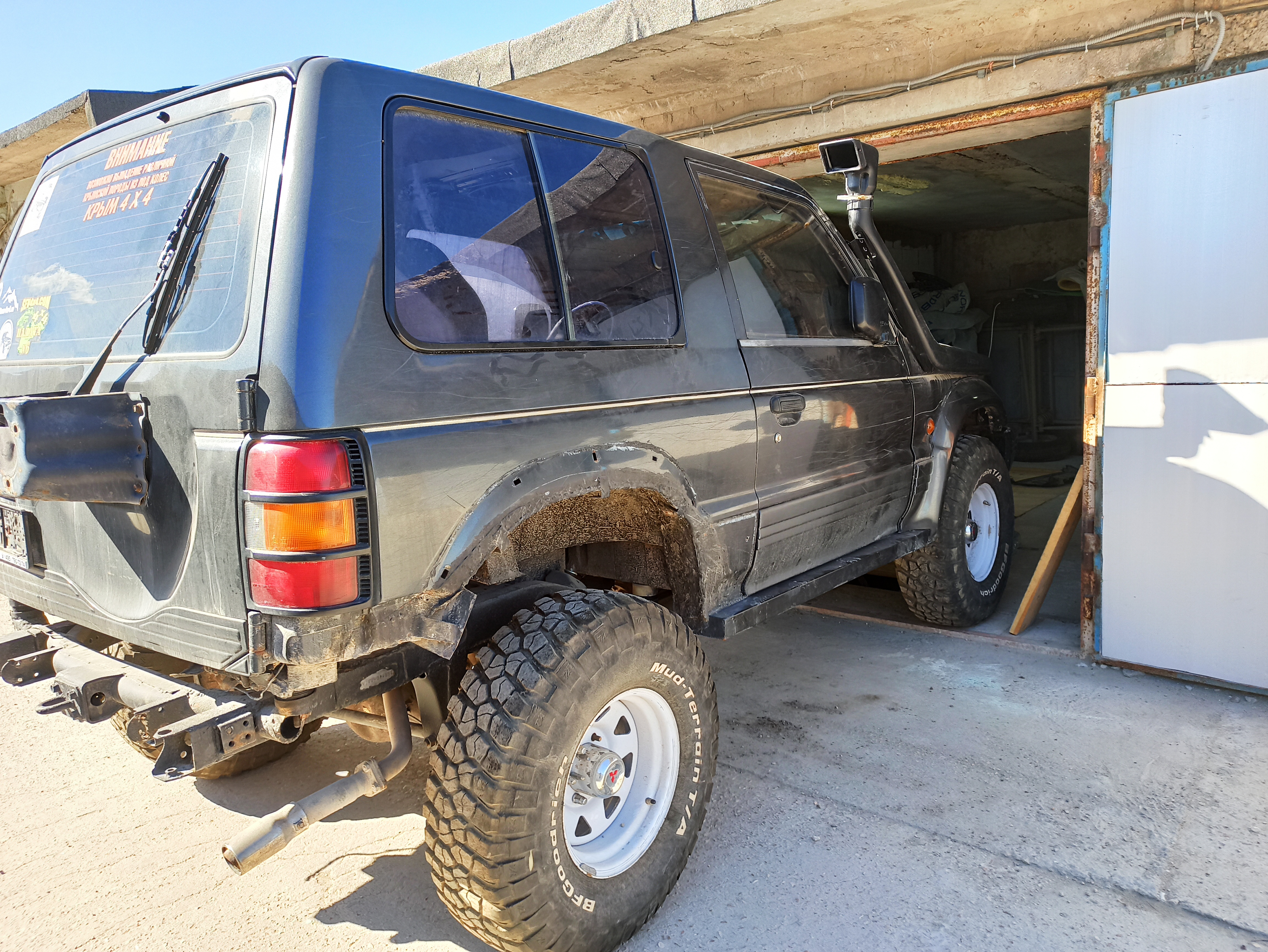 Приветствую друзья. Распродаю остатки своего Паджеро 2 с двигателем 4D56 (двигатель продан). ДОКУМЕНТОВ НЕТ И НЕ БУДЕТ. В наличие есть две двери без стёкл и обшивки, капот, два бампера (передний окрашен в чёрный матовый цвет и с установленными на него фарами дополнительного света), задний подрезан под лифт в 2,5см. Крылья (правое с отверстием под шноркель, могу продать вместе с ним), какой-то пластик по салону, потолок под люк, есть также какие то стандартные фары. Мост задний в сборе, передний без приводов. Амортизаторы перед/зад. Кузов в задней части требует не большого ремонта, вместо порогов сварены две квадратные трубы с каждой стороны. Сиденья передние есть от Паджеро «каракурт», можно вбить в поисковике на ютуб. Стандартные сиденья (передние) требуют ремонта обшивки, задний диван ещё походит. Может ещё, что есть более менее ценное. Спрашивайте уточняйте. Цены в ЛС. За все имеющиеся остатки от машины хочу 50т.р. Стоит на «пеньках». Территориально в Севастополе. Телефон для связи +79788445653. Лучше ватсап, вайбер, телеграмм. Не всегда могу быта на связи. Фото выставлены для понимания цвета и варенных труб, РЕЗИНЫ И ДИСКОВ НА ФОТО НЕТ.