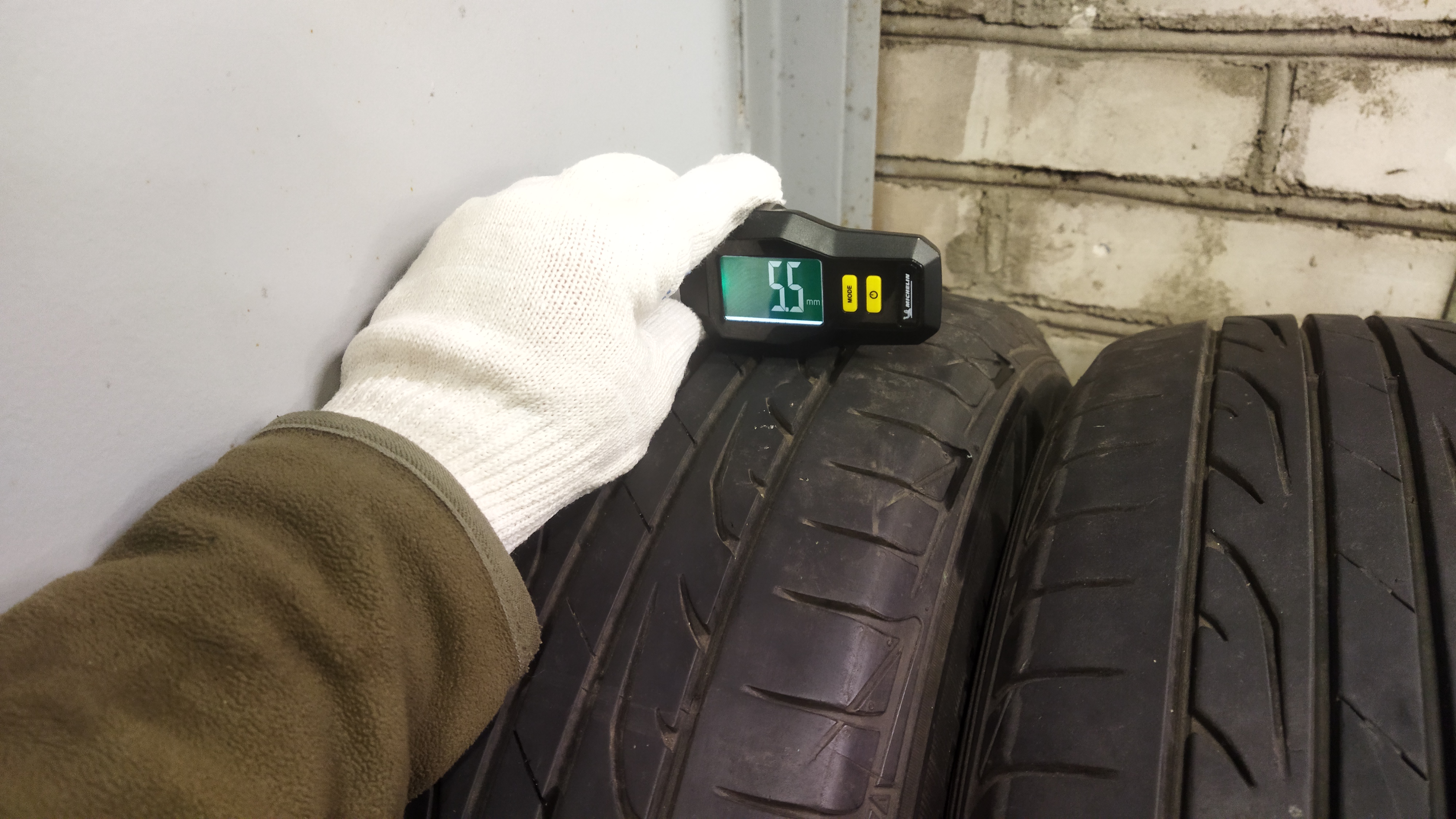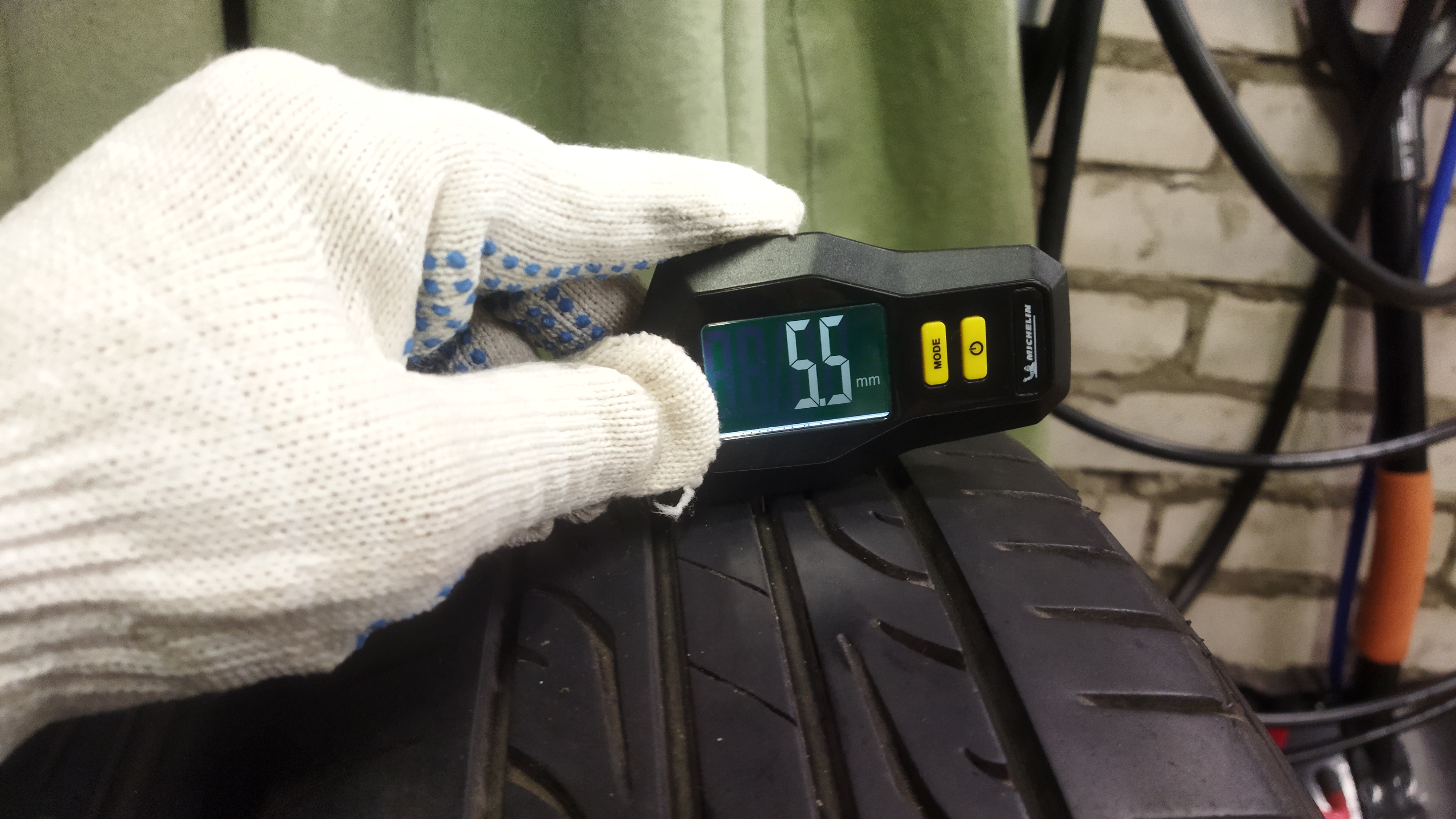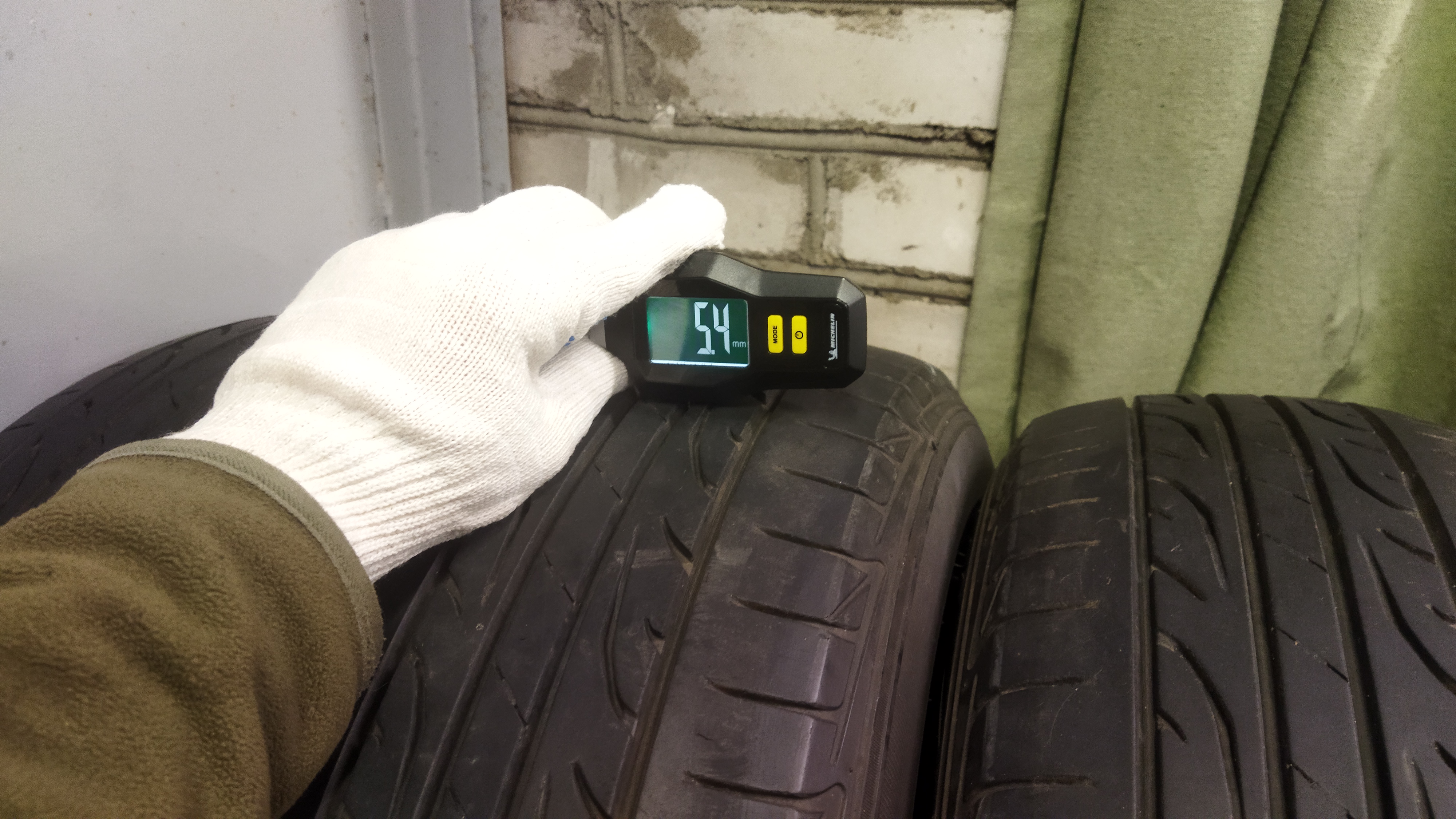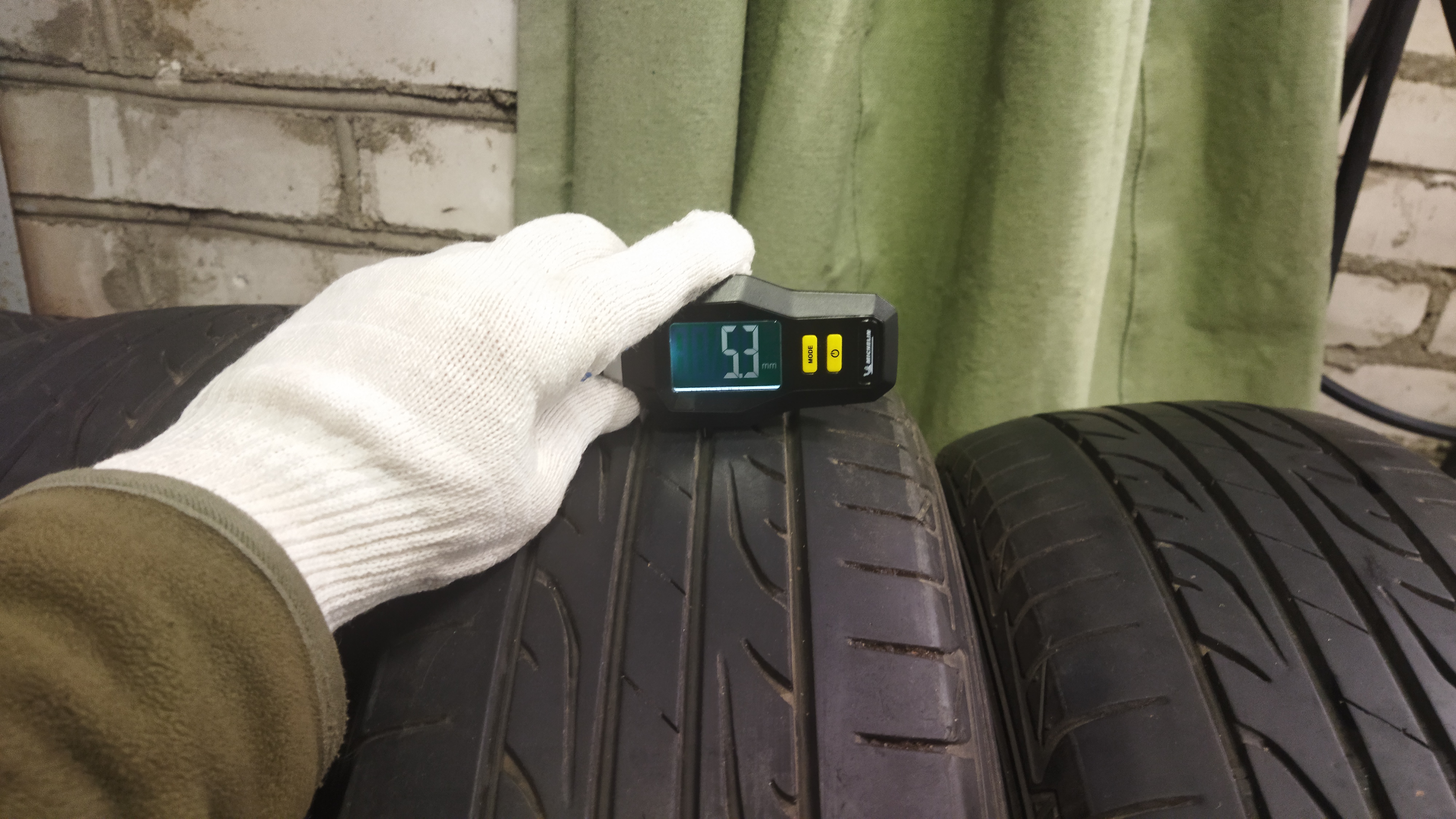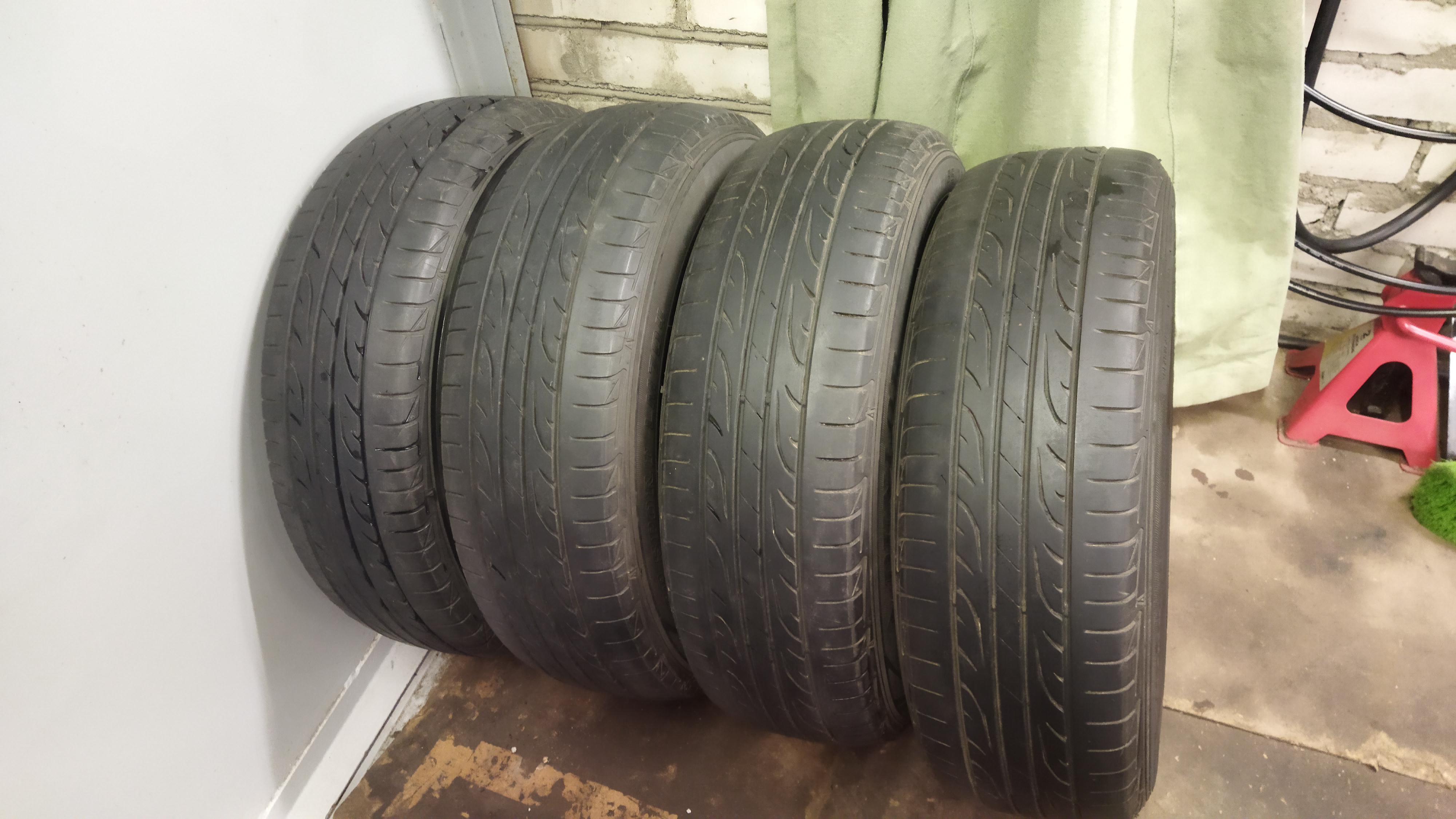 Остаток протектора как минимум 2/3, на одном стоит жгут. Не кривая, порезов нет, износ очень равномерный, т.к. машинка всегда исправна. Всё остальное на фото.