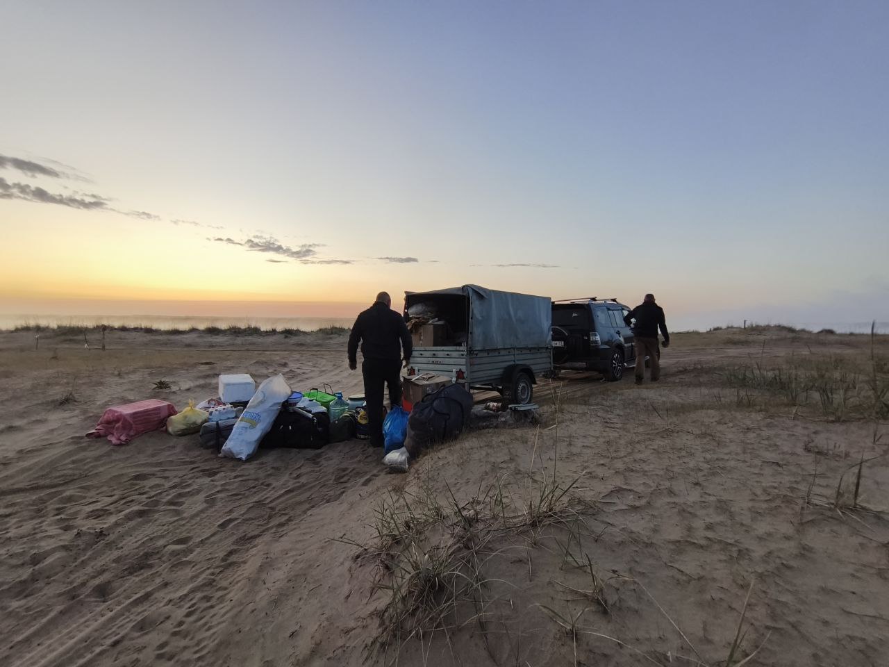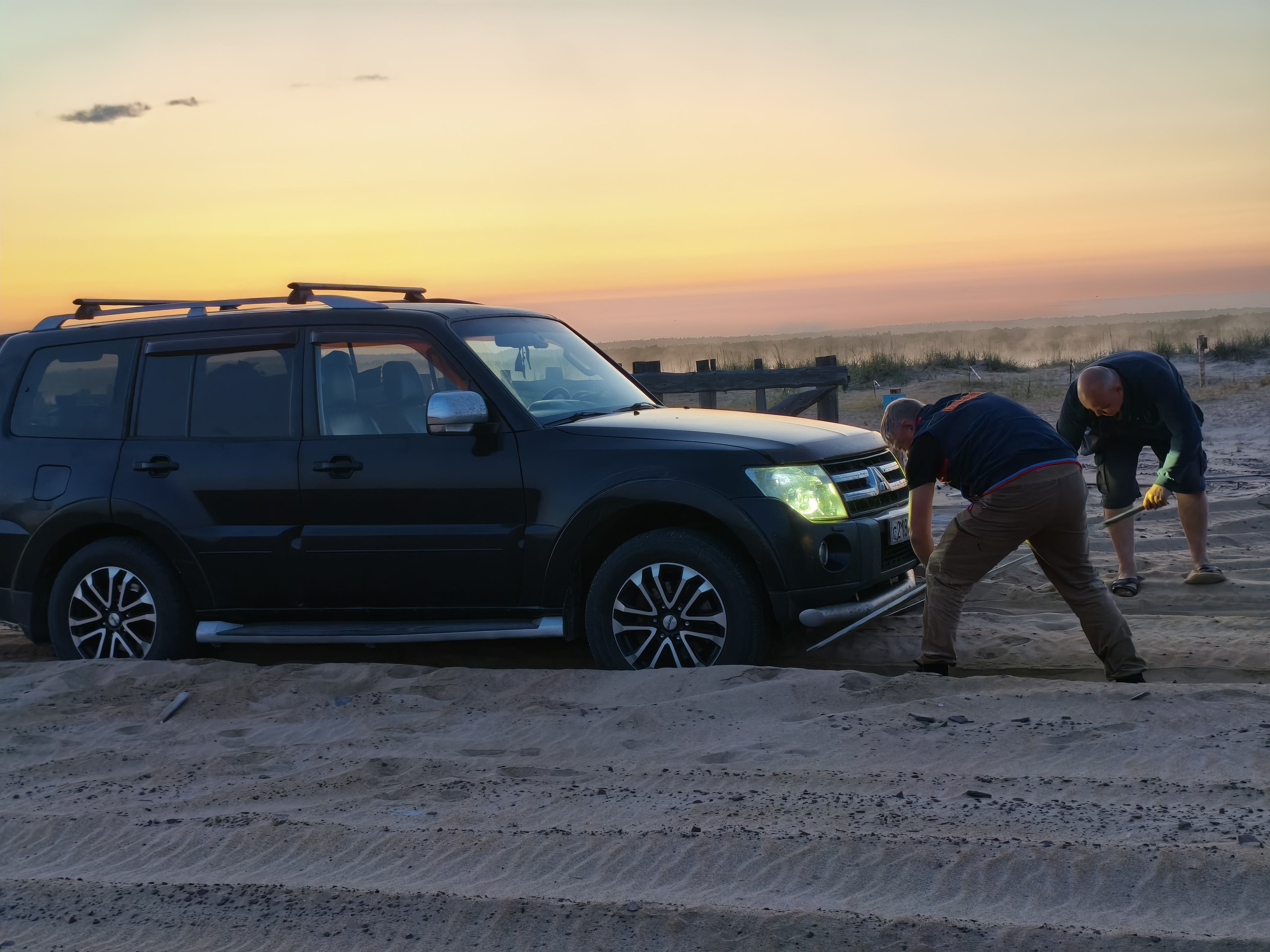 Поехали по другой дороге, а там песок. Машин тяжёлый, прицеп как якорь авианосца... Сели. Ни сэндтраков, ни досок, ес-но. Давай разгружать. По пустому вышли запросто.