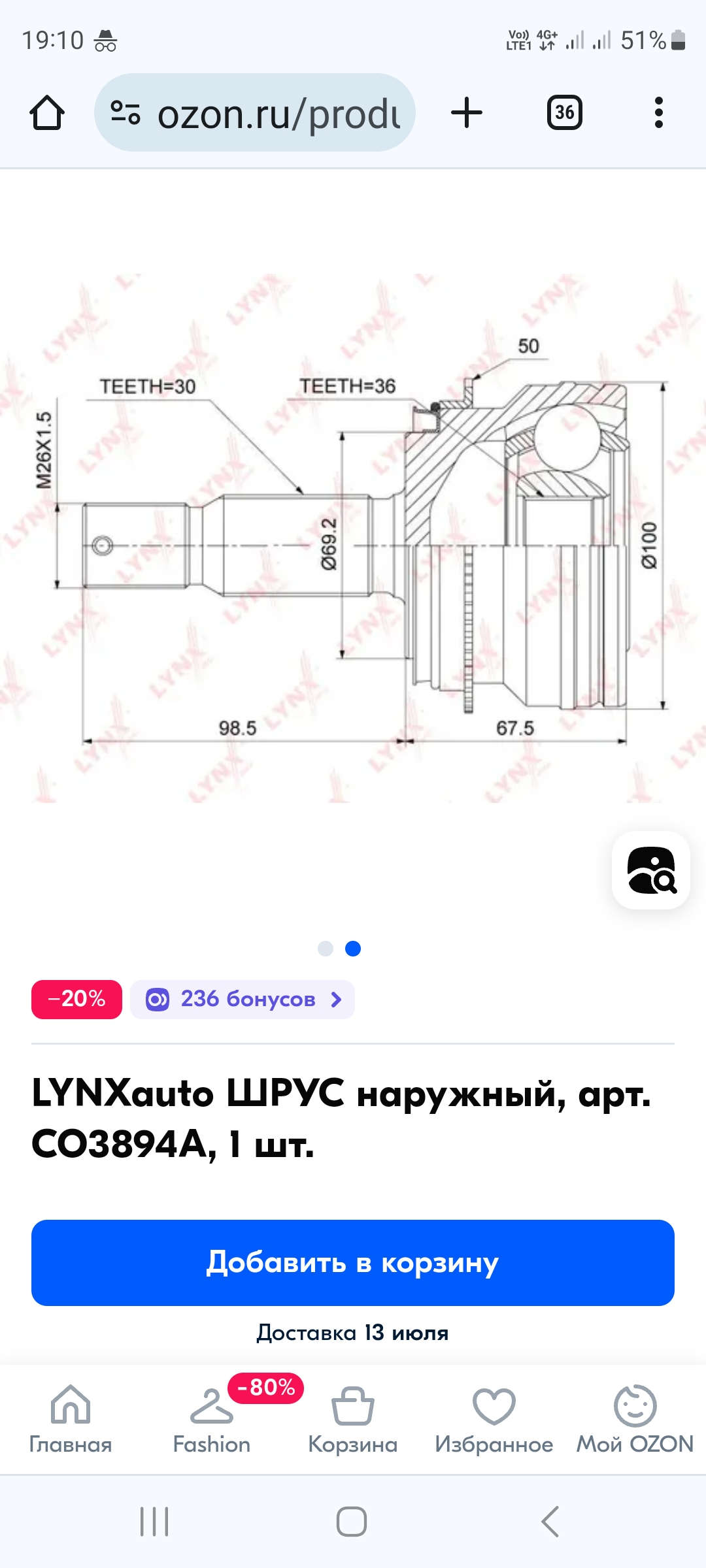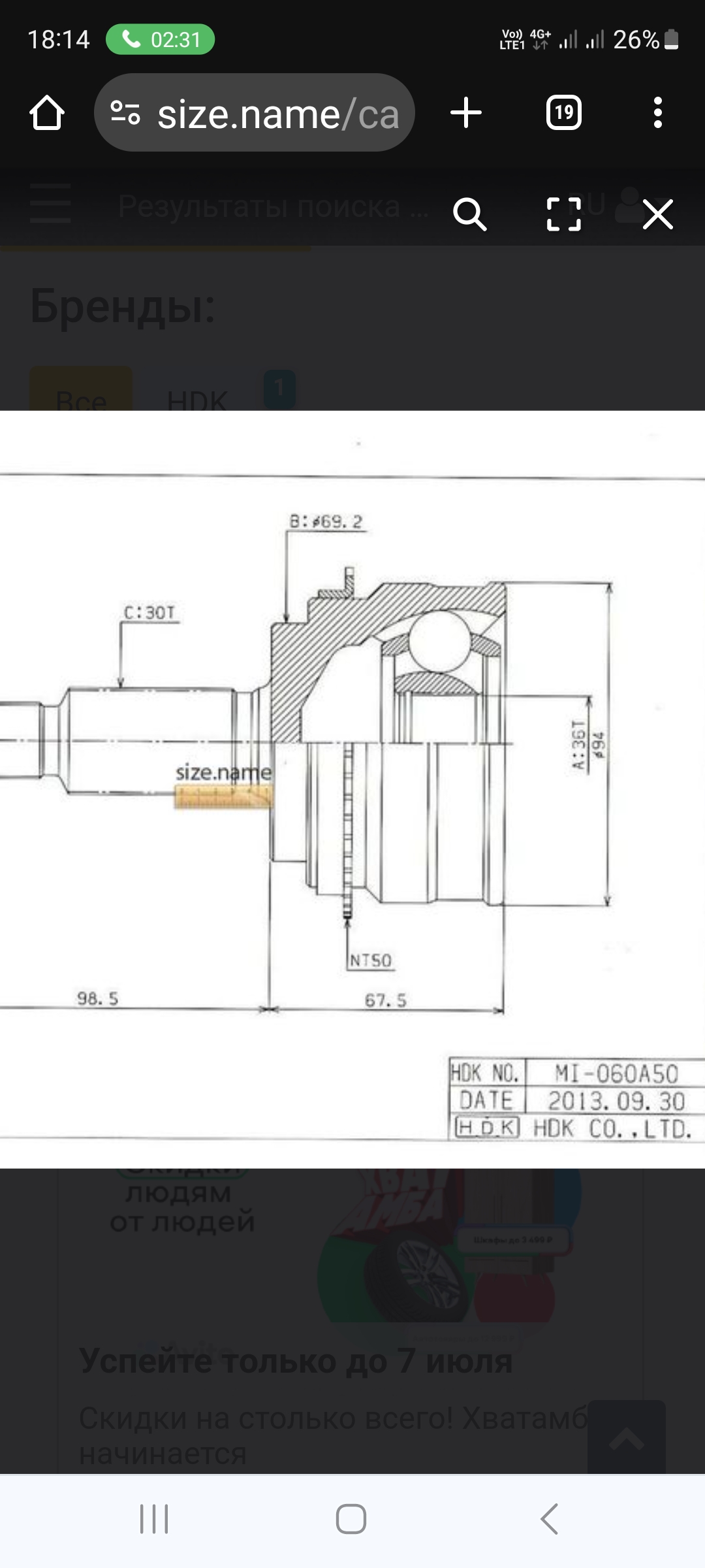 Здравствуйте.svvkkk писал(а): ↑04 июл 2024, 17:54 После выхода из строя родного левого переднего наружного ШРУСА как-то привод целиком менять не захотелось, и был поставлен ШРУС HDK MI-060A50.