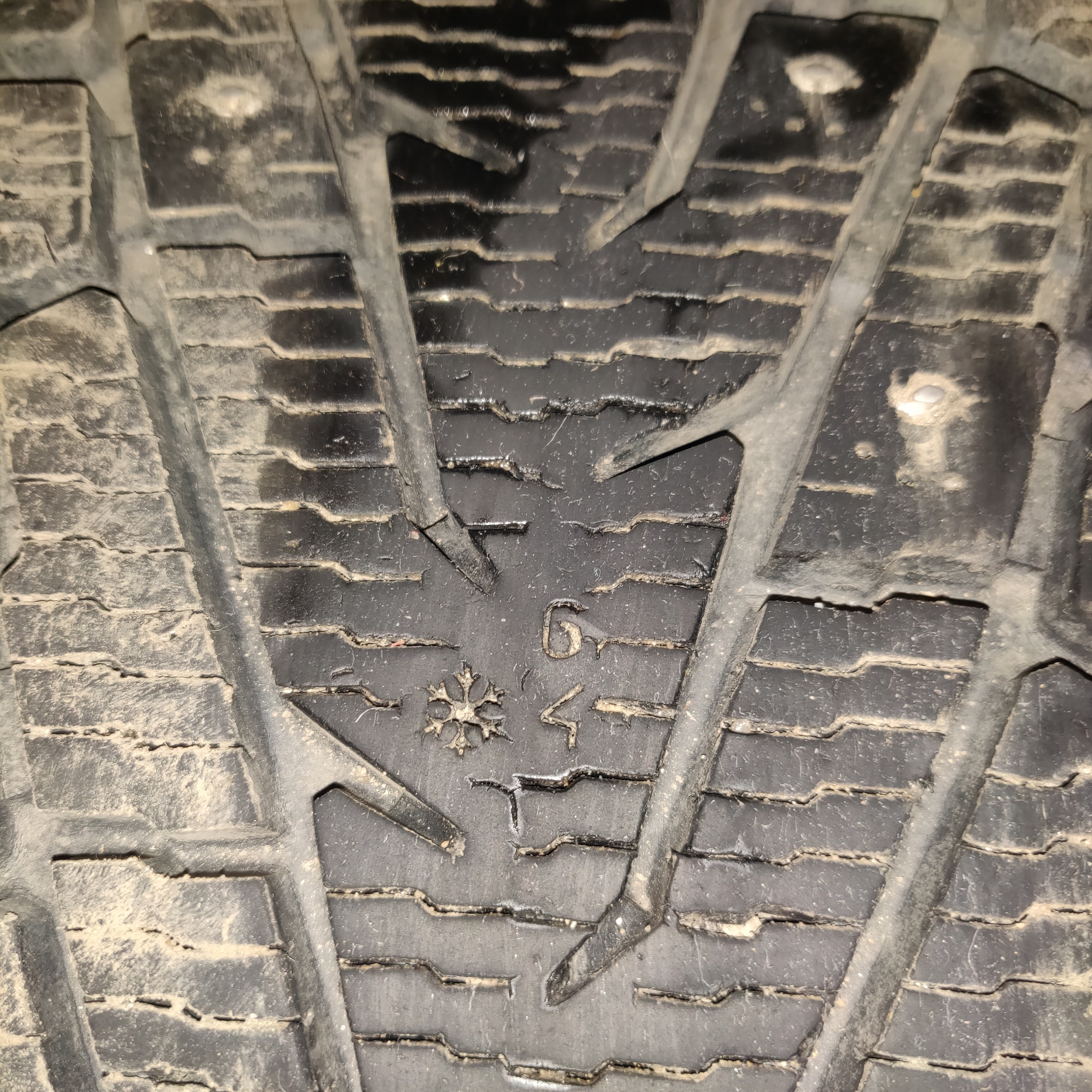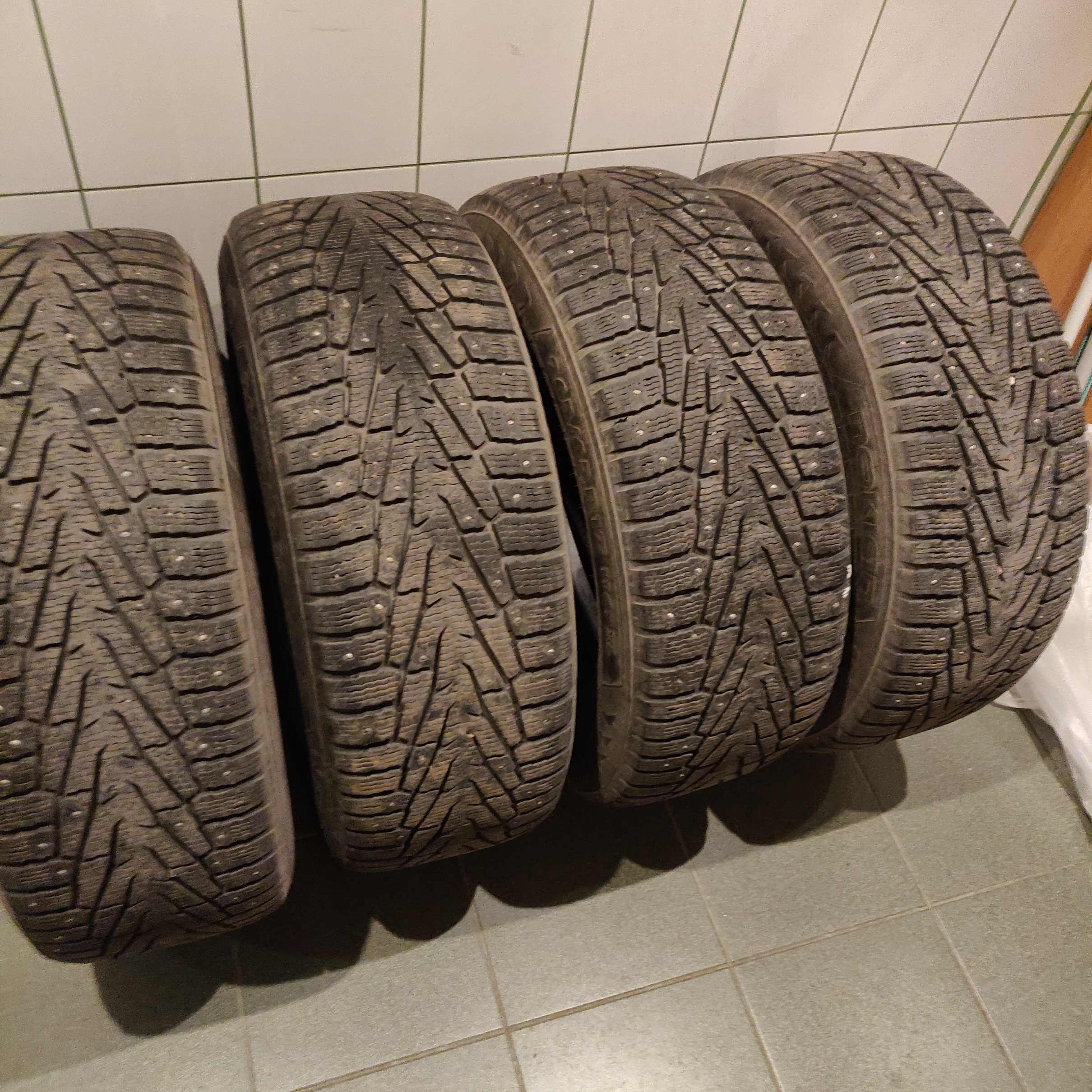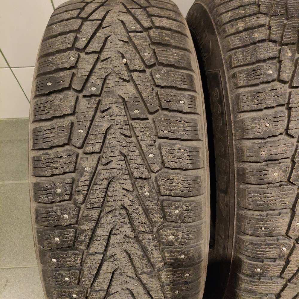 состояние очень хорошее, все шипы на месте, остаток протектора более 6 мм по индикатору на шине (см. фото). Без грыж и порезов. Резина ещё в начале декабря ездила по дорогам. Снял со сданной в трейд инн машины. Цена 13 тыс.