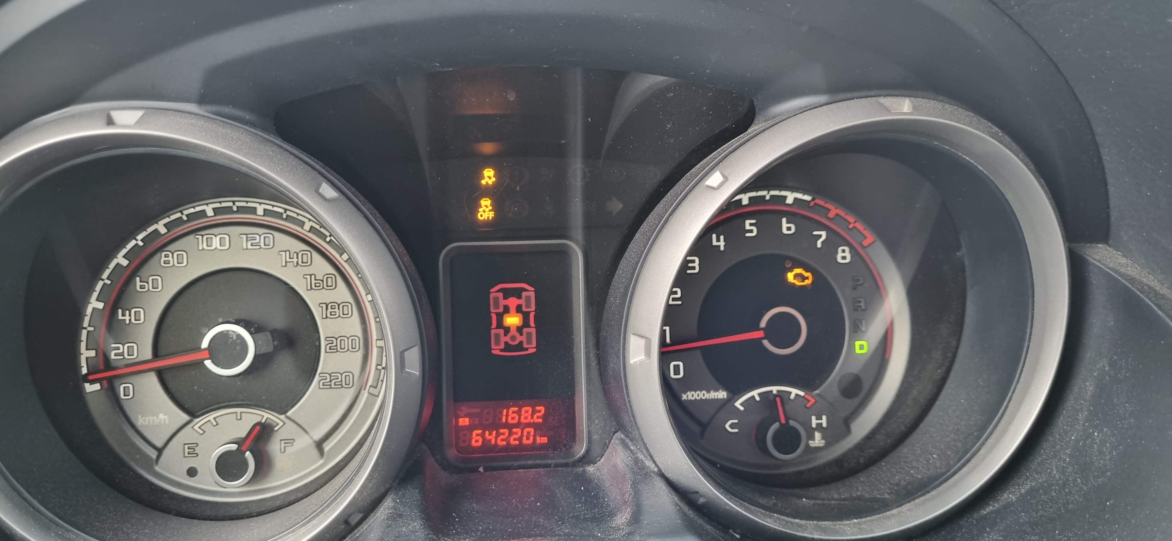 Утром на улице +13. Когда завелся, индикация ошибки двигателя погасла. 30 км до работы ехал и ничего не загоралось. Вечером на улице +21. Завёлся, поехал. Километров через 5 замигала ошибка раздатки и изагорелась ЕСП. Остановился, заглушил и завёл двигатель, ошибки пропали. Остальные 25 км до дома ошибок не было.