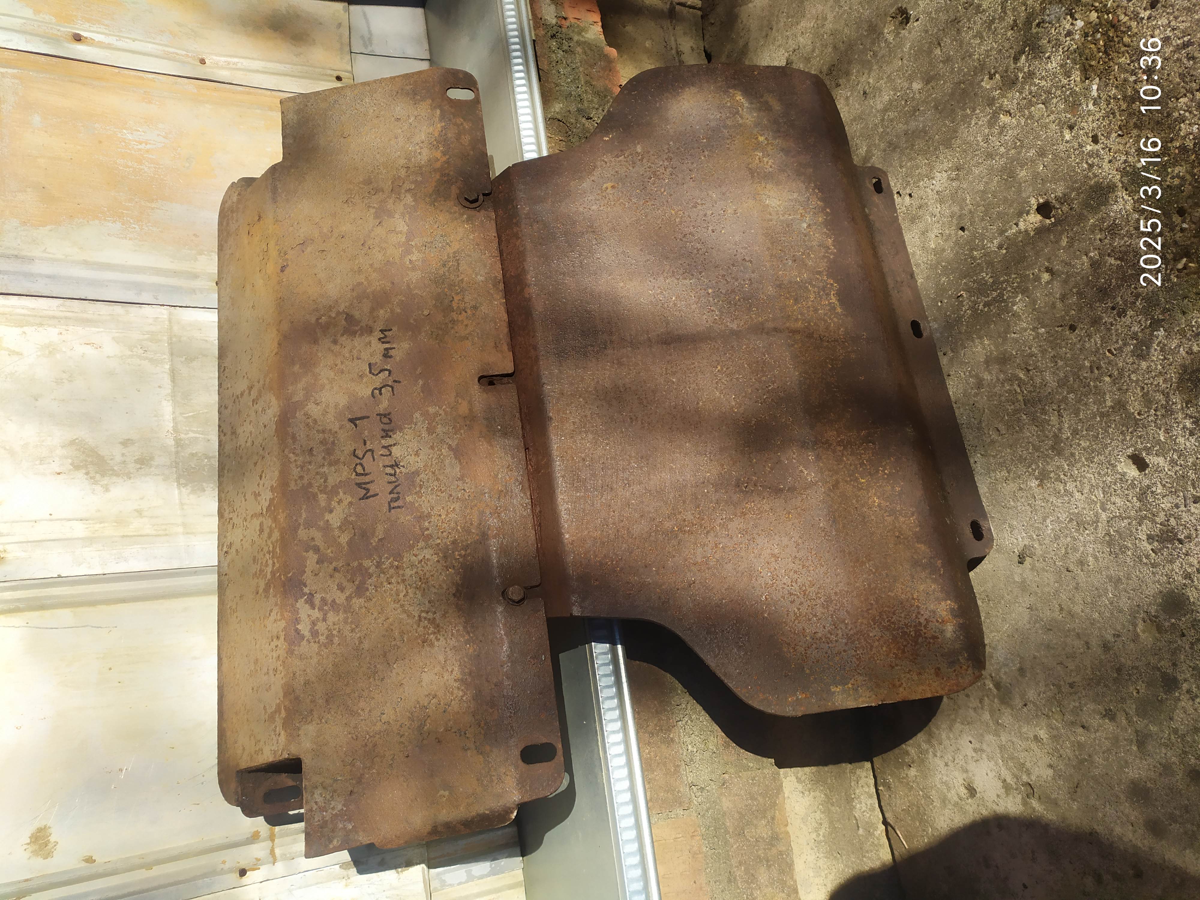 Продаю усиленную стальную защиту картера ДВС на МПС-1. Защита не колхозная, сделана качественно, толщина 3,5 мм!!!, была установлена в Рольфе на мой МПС-1, но для моих задач слишком, поставил тонкую штатную. Эта валяется без дела. Снаружи ржавая, но на прочность это никак не влияет. Можно отшлифовать и покрасить, толщина позволяет, но я это делать не буду.