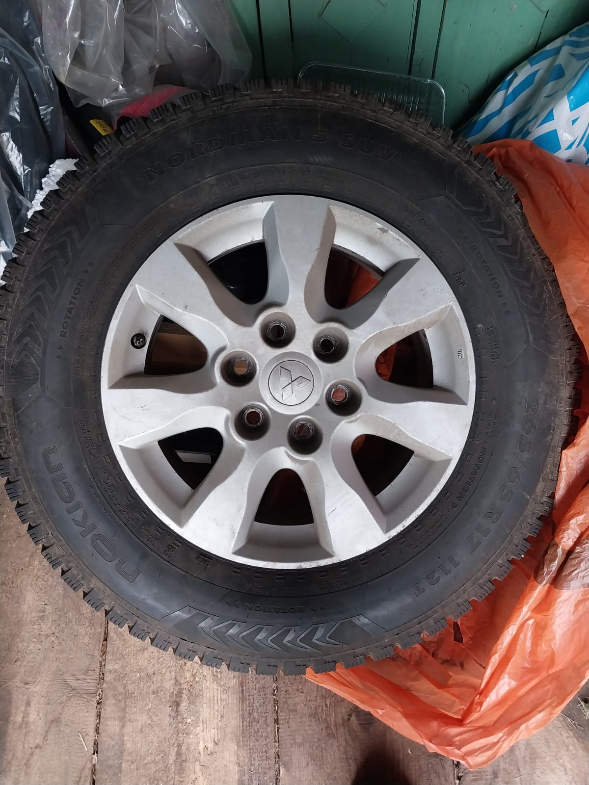 Продаю комплект (4 шт) Зимние шипованные колеса Нокиан нордман 5 в сборе на оригинальных дисках Pajero/Паджеро 4 265/65/17. Резина Бу 1 сезон, без ремонтов, шипы все на месте, остаток протектора минимум 8 мм (на фото) Продаю только комплектом!
