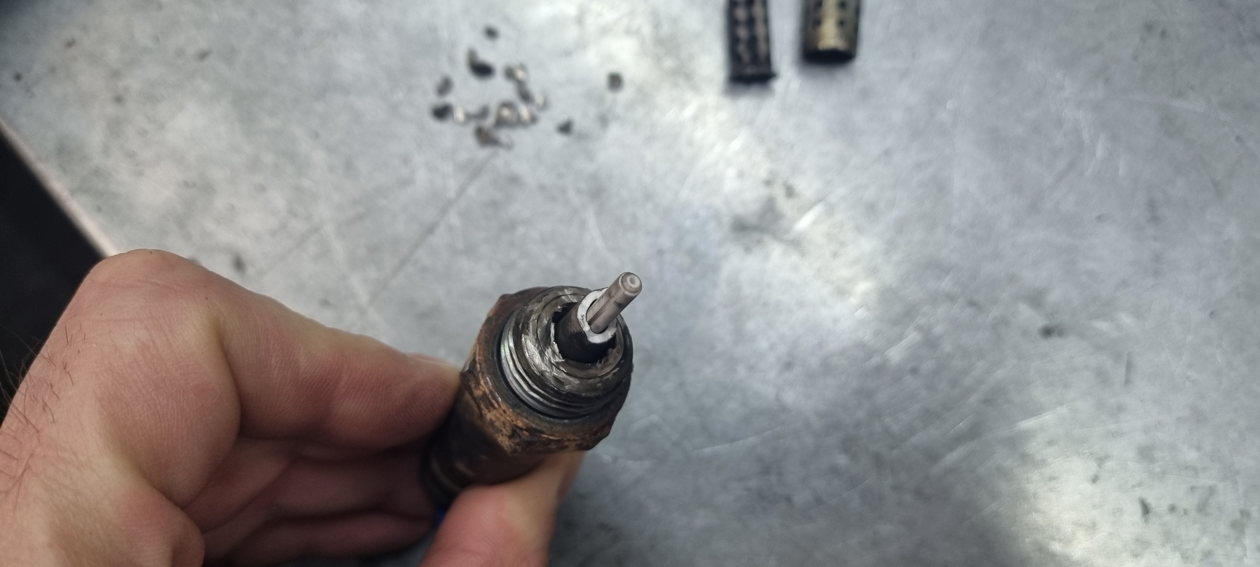 Выкрутили, тоже внутри керамика рассыпалась. И родная черная была в саже и эта тоже. Фото приложу. Непойму ничего.