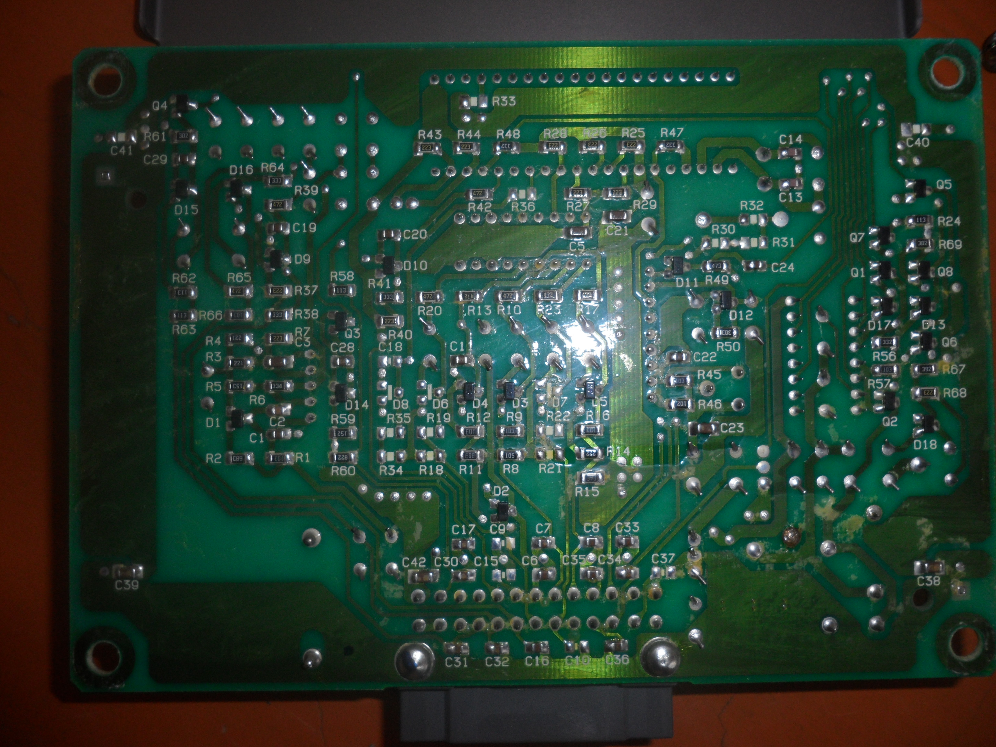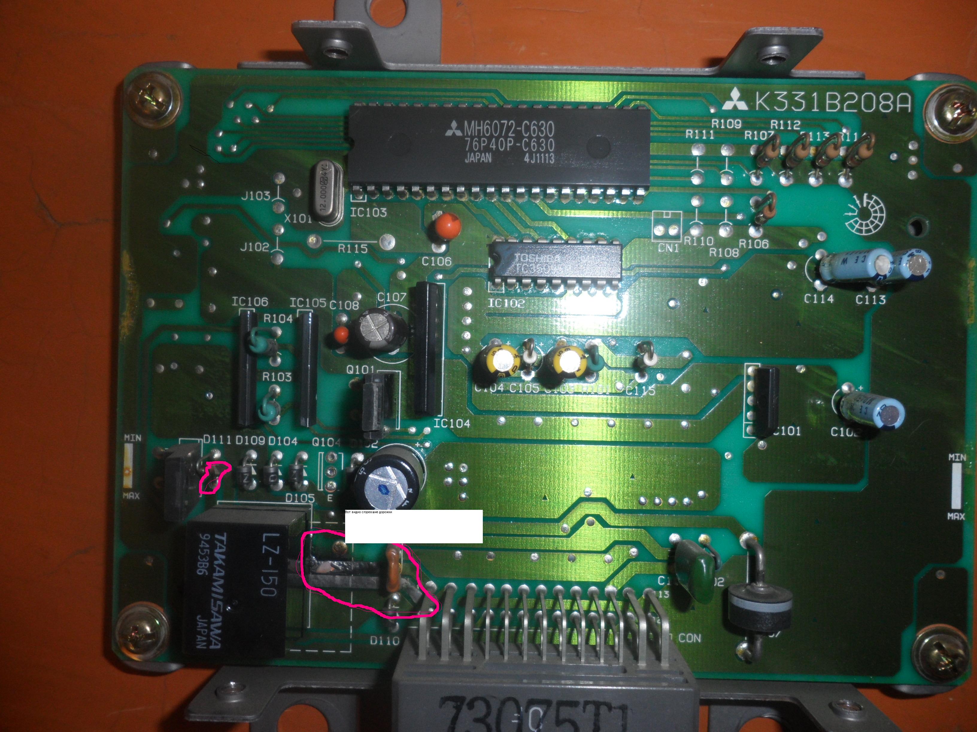 Ну вот в следствии замыкания подскочило напряжение и отстали дорожки. Релюшку в самом блоке я проверил - целая, сопротивление 3Ом. на эту релюшку управляющие сигналы идут с таймеров (заморачиваться на этом не стал) Далее отпаял транзистор и проверил, он целый (кстати это полевой транзистор) от которого идет напряжение на реле накала свечей через контакты этой маленькой релюшки в блоке. Дорожки естественно отошли и сгорели. Далее не заморачиваюсь прямо на дорожки напаиваю облуженную провлочку, все это дело прямо на плате делаю с флюсом и затем заливаю канифолью для изоляции (прямо маленькими камочками расплавляю на плате), на фото видно. Далее ставлю все обратно, тестирую по книге и как разжевал AirWest выше. Все работает, есть конечно небольшие расхождения в пределах допустимых норм. Все!!! упаковываю, Чудо произошло все работает, отключается подключается. Машина в поряде, экономия на целый новый блок с огромной ценой.
