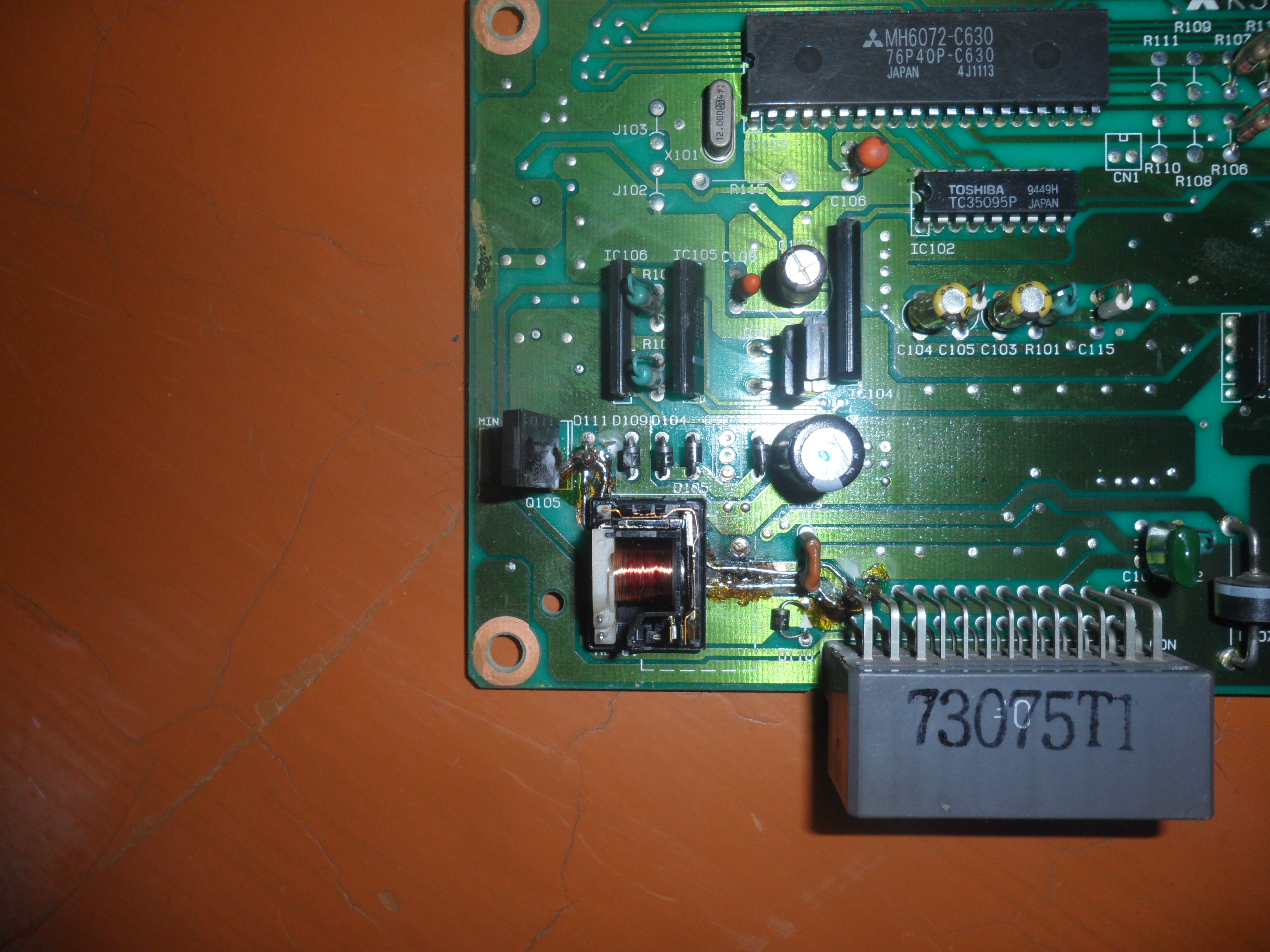 Итак думаю... японцы делают не сложнее Российских самолетов, залажу в блок, разбираю, не беда что немного цифры и буквы разнятся. В итоге вижу выше на фото сгоревшие дорожки. Ну думаю все приплыл... немного подумав так как ранее разбирал само реле накала свечей и видел что оно было немного черным, а значит не перегорело, а замкнуло, вследствии этого сопротивление катушки стало меньше но работало (бывший хозяин не заморачивался сам и наверное на СТО отдал, а там не заморачиваясь и напугав ценой блока сделали просто кнопку). Я немного ранее перемотал реле свечей накала и пользовался так же кнопкой до сего дня.