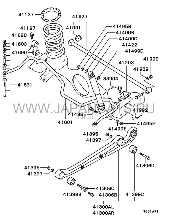 Вопрос к уважаемым форумчанам: назрела проблема замены сайлентблоков задних продольных рычагов. В сервисе на диагностике сказали, что средние и задние сайленты под замену. А exist выдает, что меняется только средний с кодом MR267105, а задний только в сборе с тягой. И что еще не совсем понятно, что тотже exist говорит о 4 подобных сайлентах, тоесть вроде бы и задний тоже можно поменять или я ошибаюсь?
