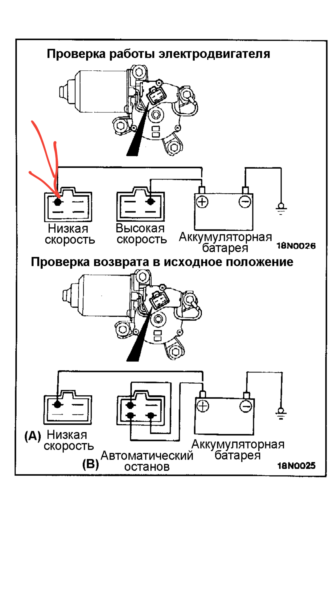 Дело именно в управлении. Моторчик исправен. Если подавать на него питание, работает корректно и на парковку встает. Вот только в положении выкл на подрулевом переключателе, на помеченный контакт моторчика приходит +. Так же контакты паркинга не замкнуты. Переключатель разбирал, все на месте.