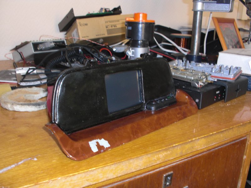 Выкинул всю трехомундию (компас, альтиметр, кренометр), выпилил под овал, приклеил деревяшку на эпоксидке, зашпаклевал и закрасил. Приклеил кнопки от пейджера с куском корпуса и подпаял к контактам навигатора. Вот вроде и все. Правда пришлось навигатор доделать - у него оказалось питание 5 вольт - прикрутил доп стабилизатор. Получилось конечно не супер, но если не присматриваться - то вроде и ничего. Покрайней мере функционал побольше чем у старой панели