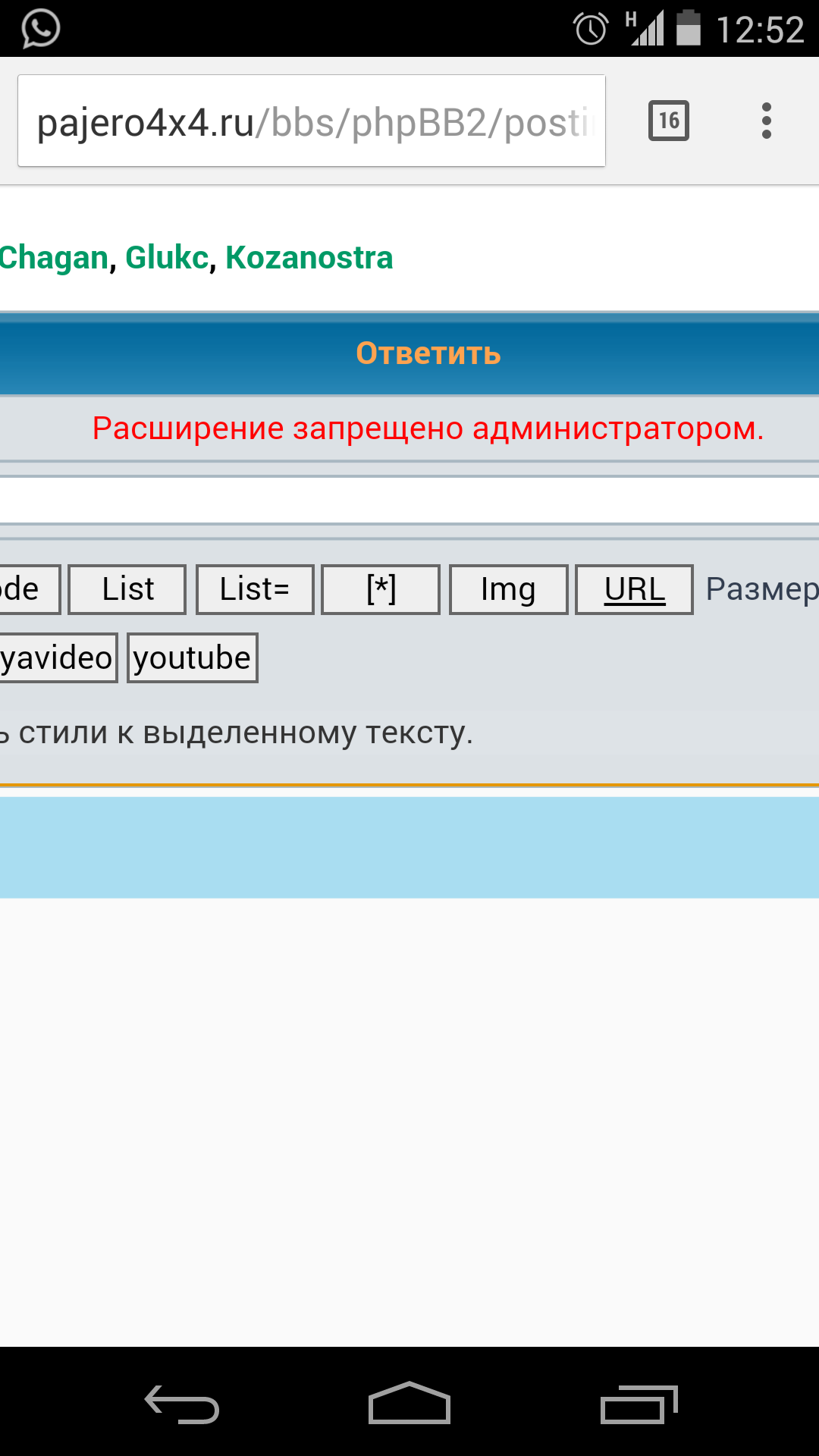 (в данном случае, сообщение может быть размещено, только если в основном поле ответа присутствует хоть 1 символ. Если писать нечего, то рекомендую ставить смайлик)