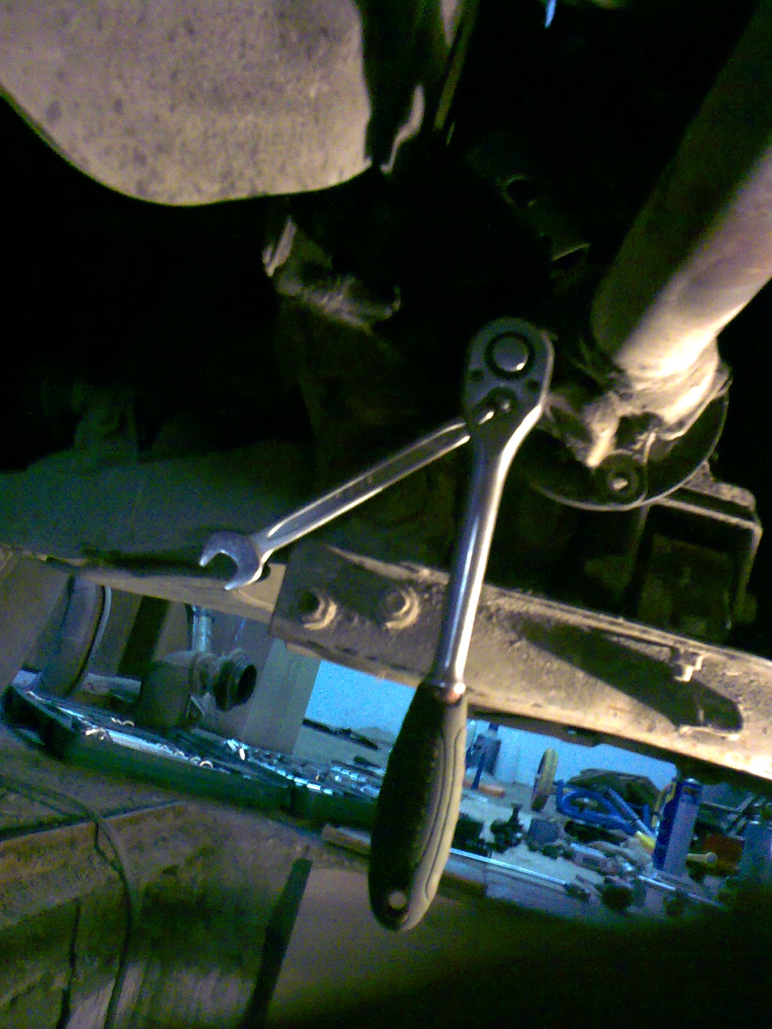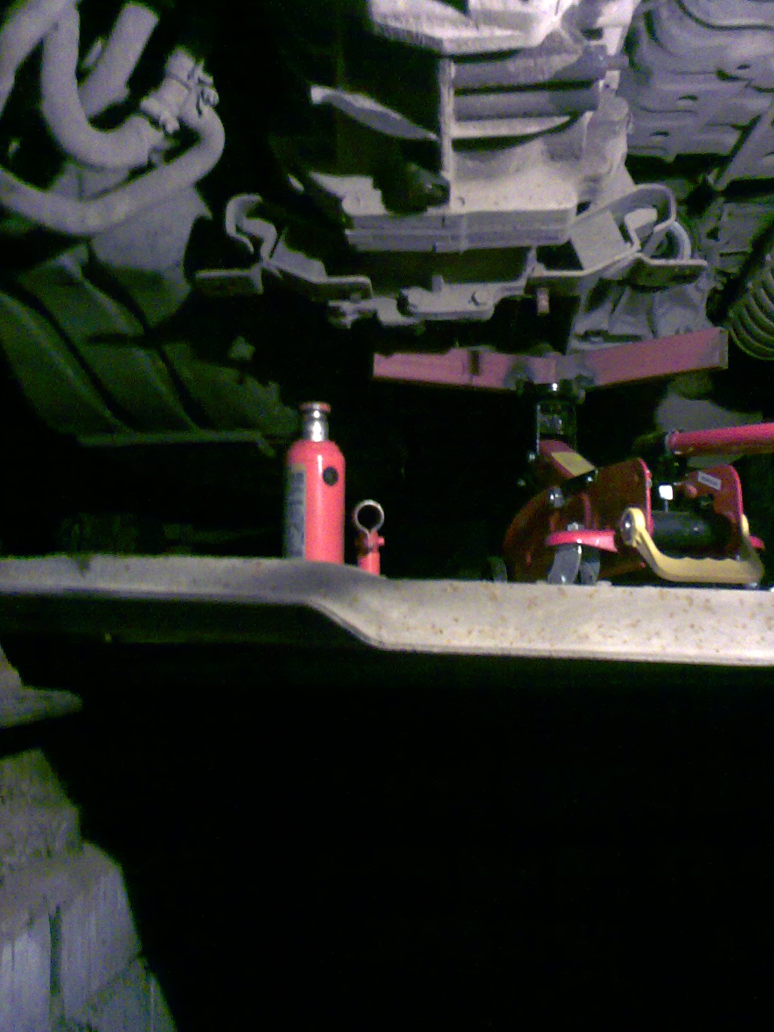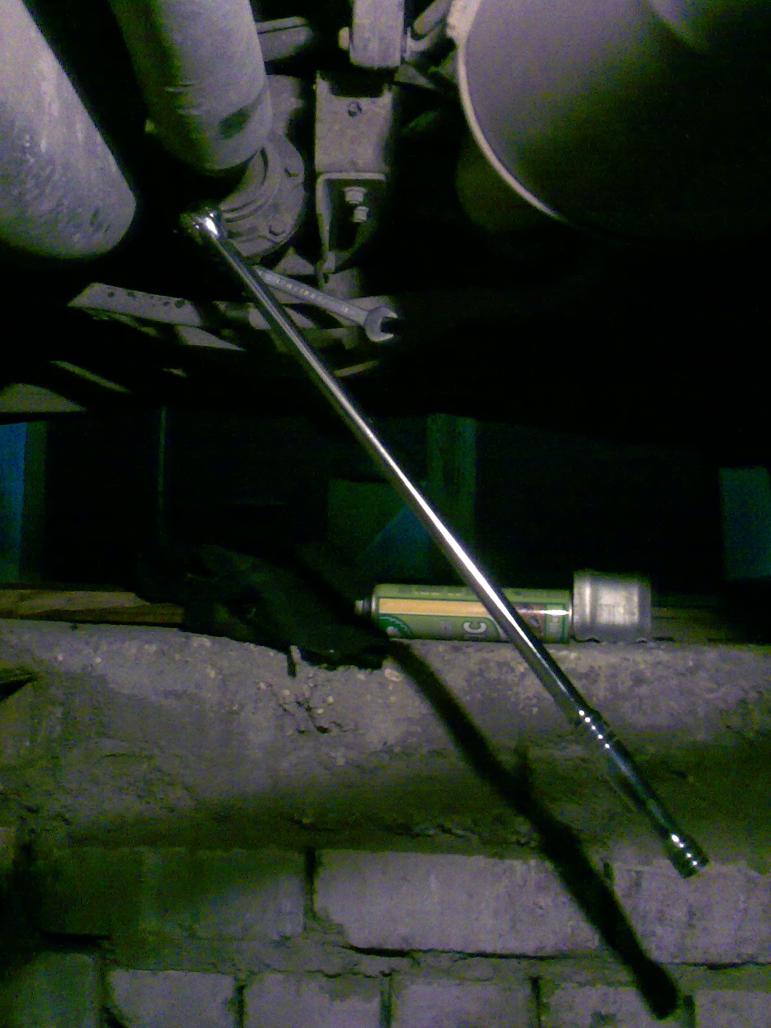 Из помощников присутствовали: подкатной домкрат на 2т (немного усовершенствовал, потом выложу на фото), стандартный домкрат, вороток 660 мм, газовый баллончик с горелкой, две WD-эдешки и набор нормального инструмента в чемоданчике