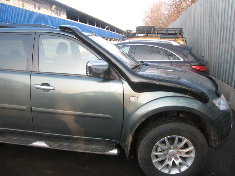 Засада в том,что остается щель между крылом и шноркелем,т.е.шнорк не прилегает как хотелось бы(на эльке такого нет) и пришлось её заливать герметиком(это и есть,имхо, колхоз),что сделать аккуратно трудновато,времени на это убили уйму,еще сразу не попали при сверлении отверстия изнутри(это правда,зависит от мастера)пришлось его расширять,что ни есть хорошо,но вроде получилось неплохо,при взгляде непосвященных.Кстати сафарь,как мне сказали мастера,тоже ложиться не очень,все-таки геометрия НМПС немного,но отличаеться от L-200(кто-бы мог подумать?)G.A.P писал(а):