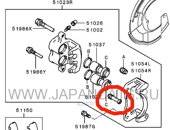 Направляющая (маленькая кажется) вставляется в резиновый стаканчик, его разбивает и суппорт бьет по направляющей.