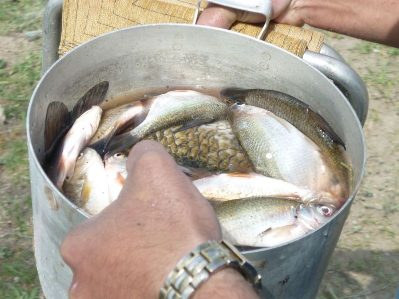 За шесть дней пребывания вода ушла на метр с лишним . Хода рыбы замечено не было. Но все остались довольны , для ухи , копчения и засолки рыбы хватило