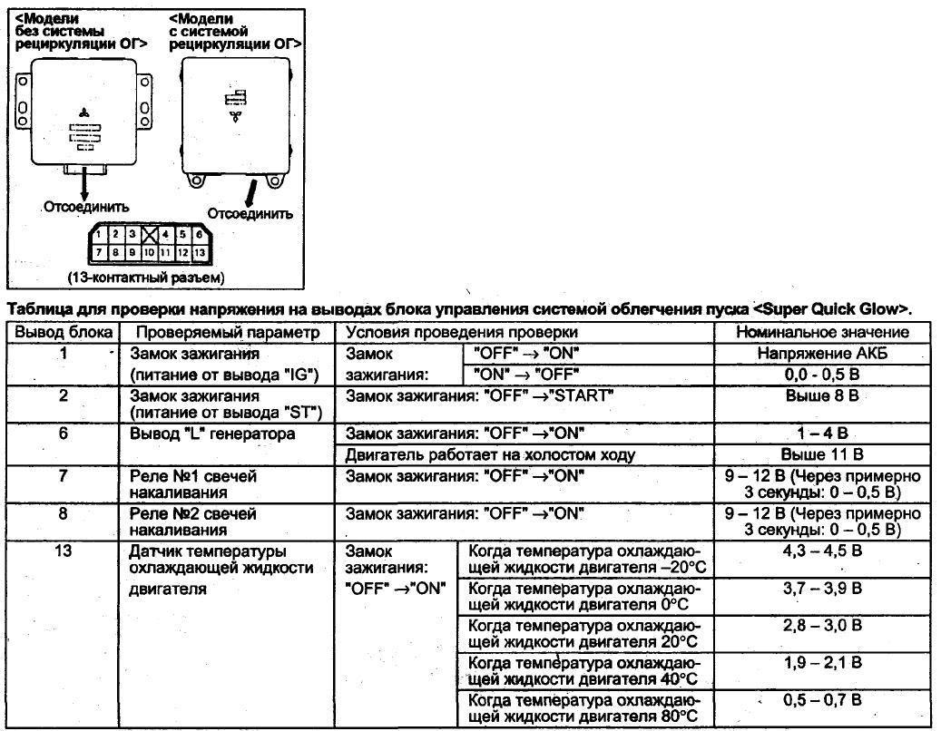 2) В принципе достаточно, но нужна еще лампочка, сними с салонного фонаря. Подключи к реле плюс, если сработает хорошо, на провод который к свечам идет, подключи лапочку, увидишь идет питание на свечи или нет, на входящий провод, подключи лампочку маленькую, включи зажигание должна гореть примерно 1,5 минуты со снятым проводом от датчика охлаждения. На реле: на болтах один плюс постоянный, второй выход на свечи, тонкий провод вход от управ блока. Надеюсь понял.