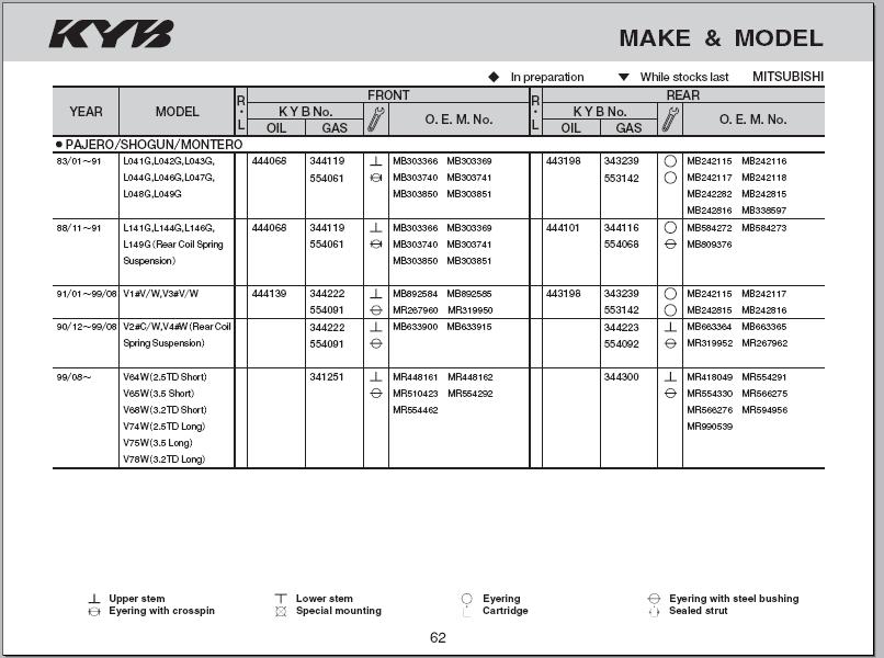Добрый день! У товарища Pajero 3, 2005 г. , 3,2, АКПП. Умерают задние амортизаторы - надо менять. По VIN идет 4162A023 без замен, а до 2005г. MR 990539 с заменой Kayaba 344300. Может кто знает - в чем засада? Может еще какие замены есть?