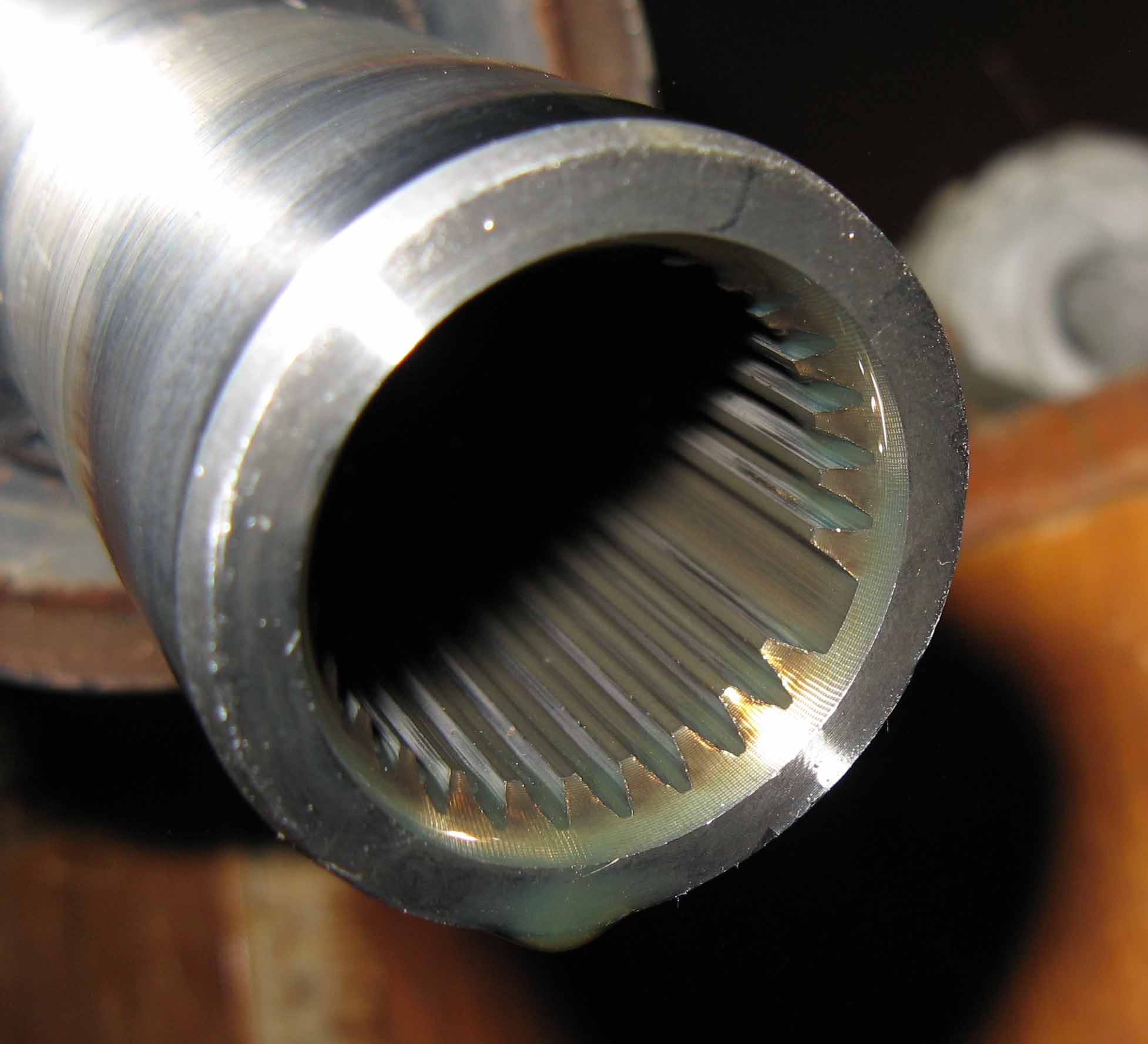 Отсутствующий шлиц для свободного прохода воздуха, иначе будет замкнутый объем и кардану будет трудно двигаться вдоль оси (масло хорошо герметизирует остальные шлицы).