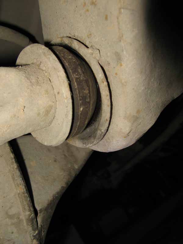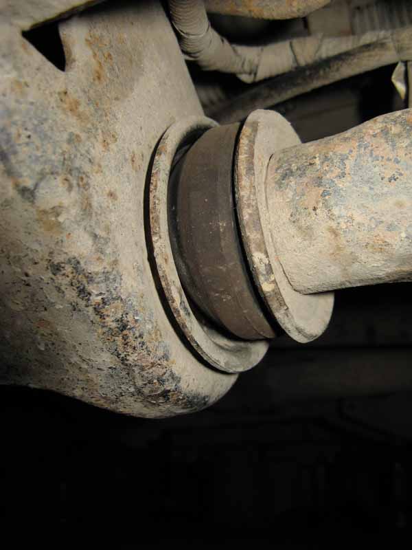 А я думаю что резиновые втулки поставлены не правильно,развернуты. Шырокой стороной они должны быть к чашке рамы а узкой к шайбе, при этом рычаг центрируется ровно по середине отверстия рамы. Рычаг при этом не прыгает и не выбивает отверстие рамы овалом. На моем паджерике пришедшем из япии не конструктором стояли так.