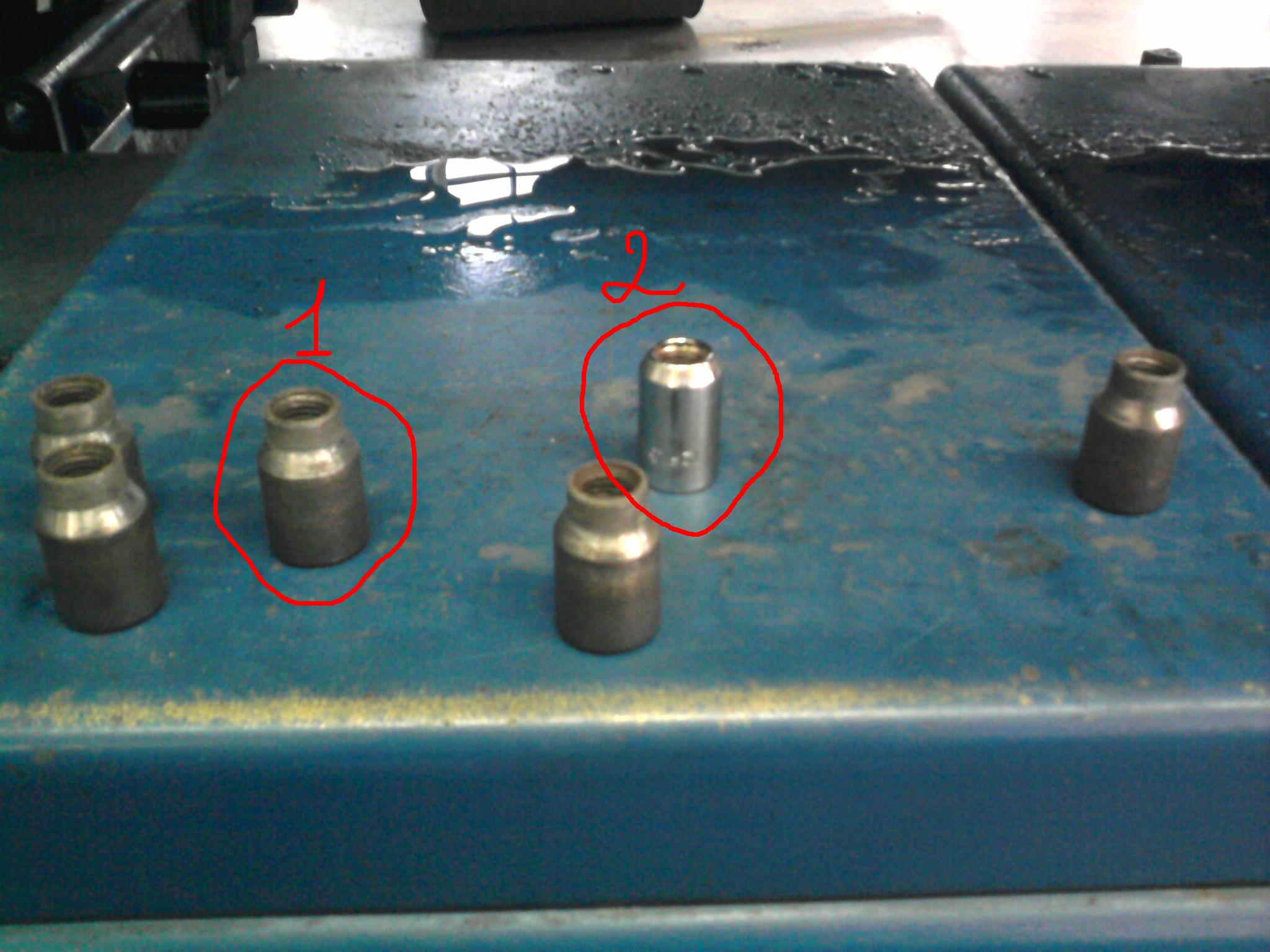 Подскажите плиз, можно ли заменить гайки(1) на гайки(2)? Вопрос задаю потому что сказали на шиномонтажке что гайки(1) якобы центруют диск, но они уже подржавели да и облизались (мать их за ногу эти супер диски Stilauto) хер их где найдешь, а вот те которые под номером (2) на рынке валом.