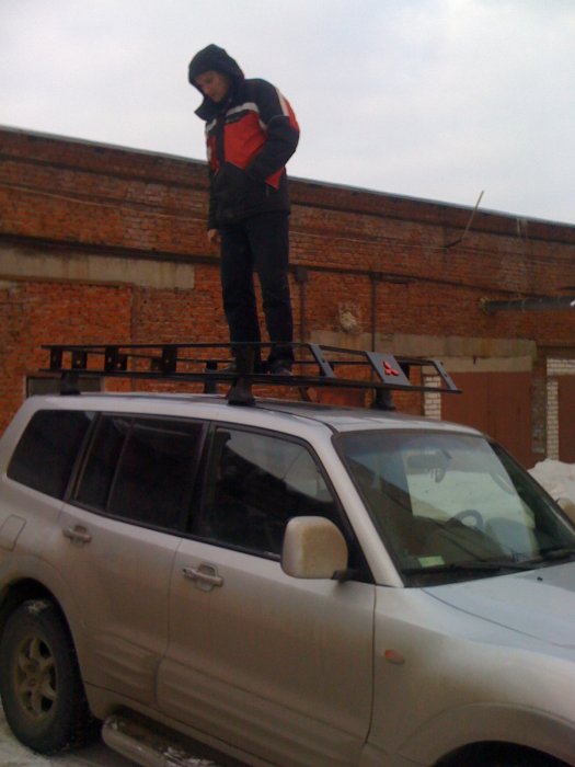 крепится в 4 точках на пластиковые опоры приворачивается корзина....160 кг распределенного груза держат.....но крышу жалко.