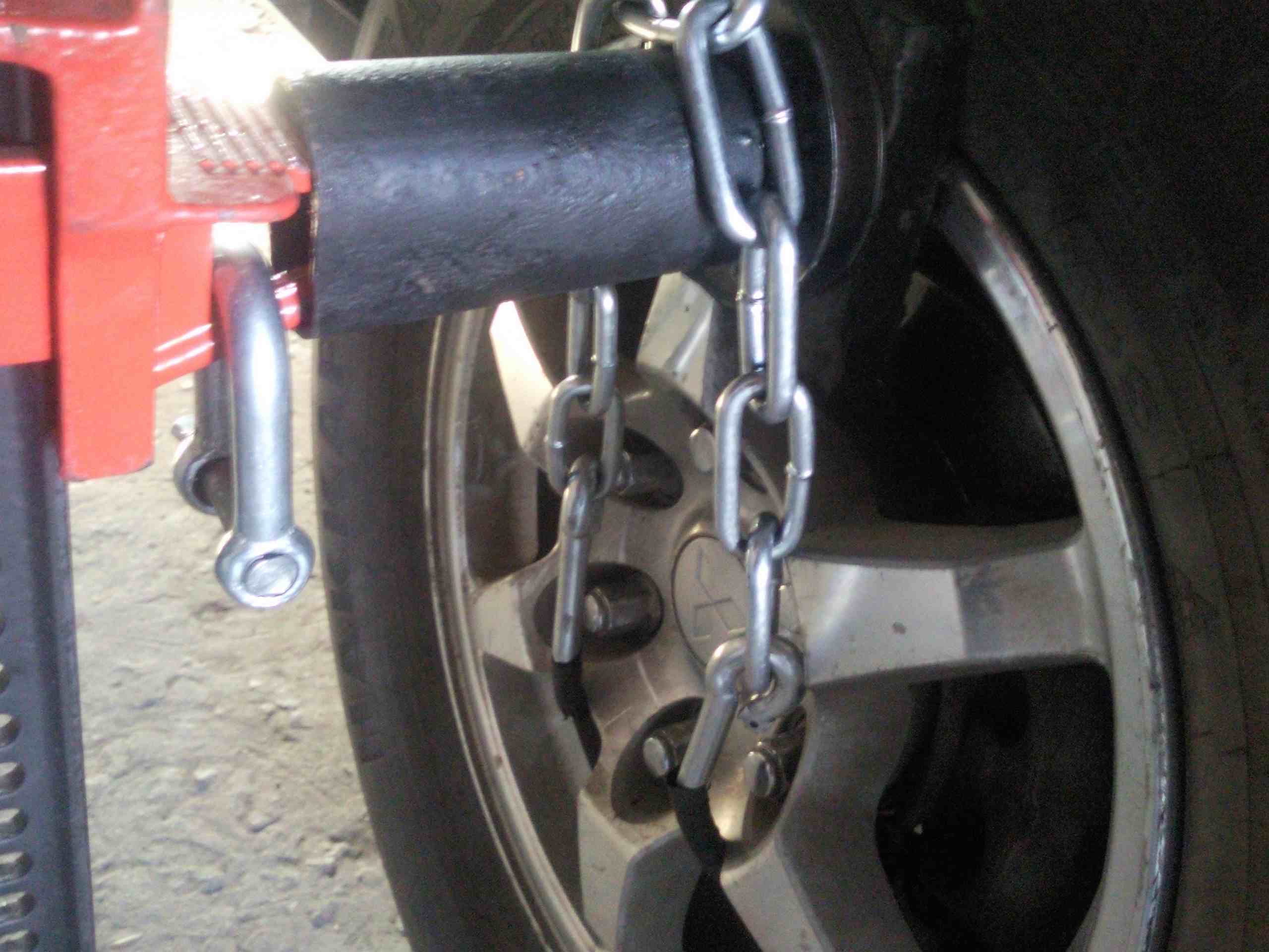 я по всякому пробовал.с перво цепь к шакалу и внутри колеса продевал но за щет проставки которая упирается в колесо мне казалось что что сильно распирает.а так тянет только верх а проставка не дает ему ударить по машине
