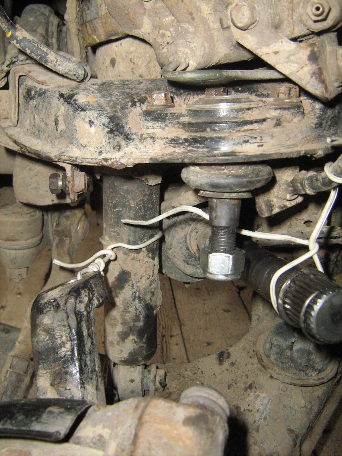 передняя подвеска держится на торсионах, которые прикручены к нижним рычагам......)))))